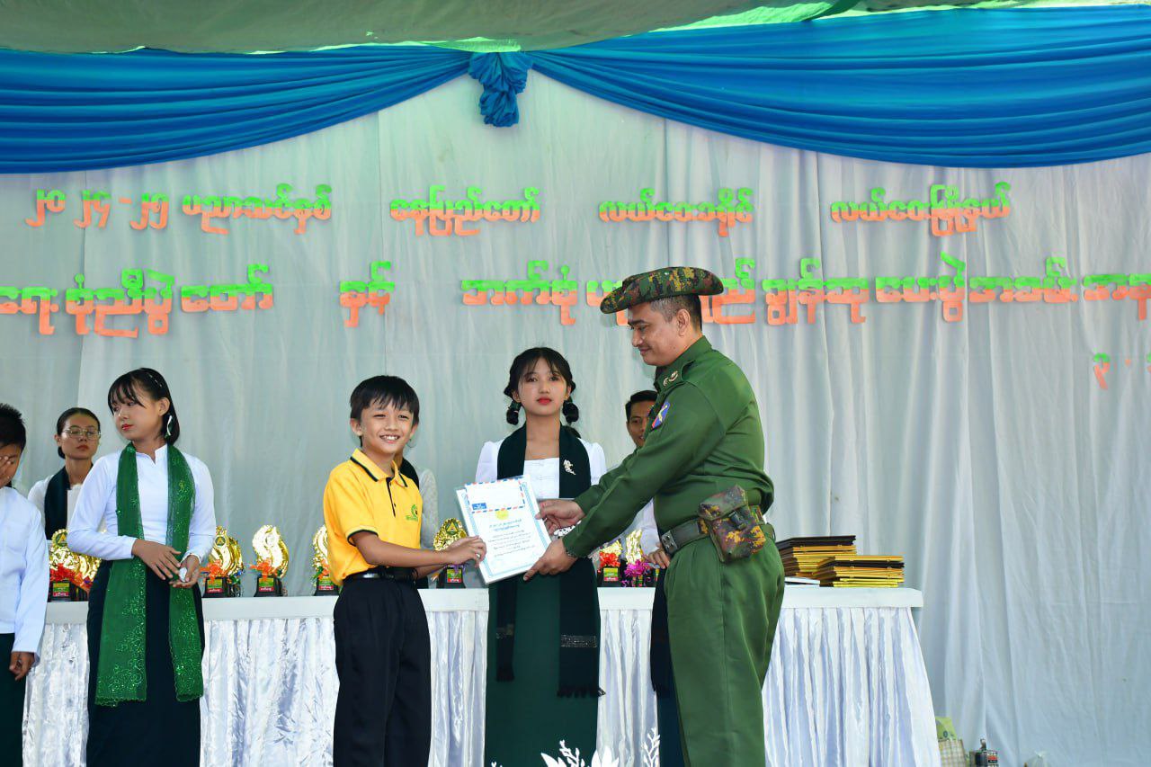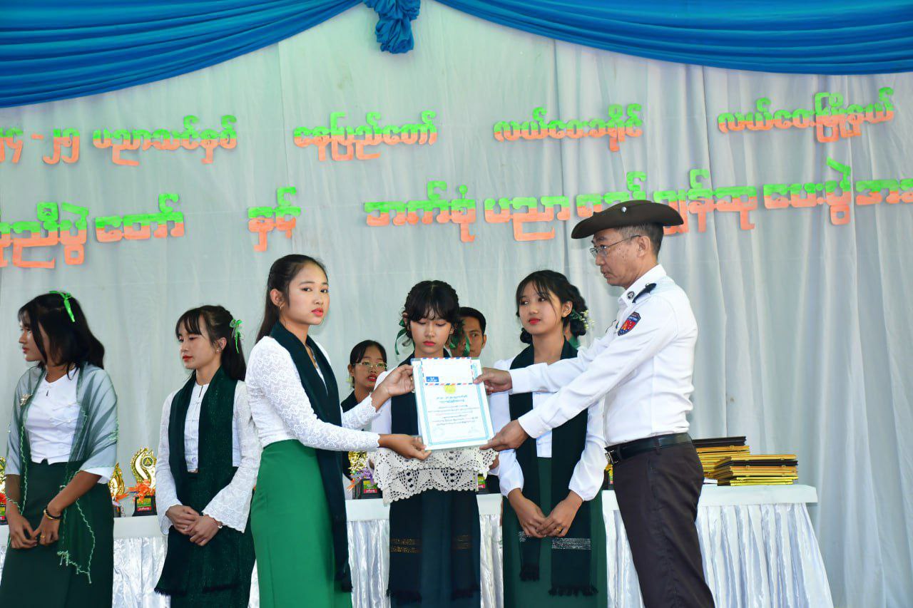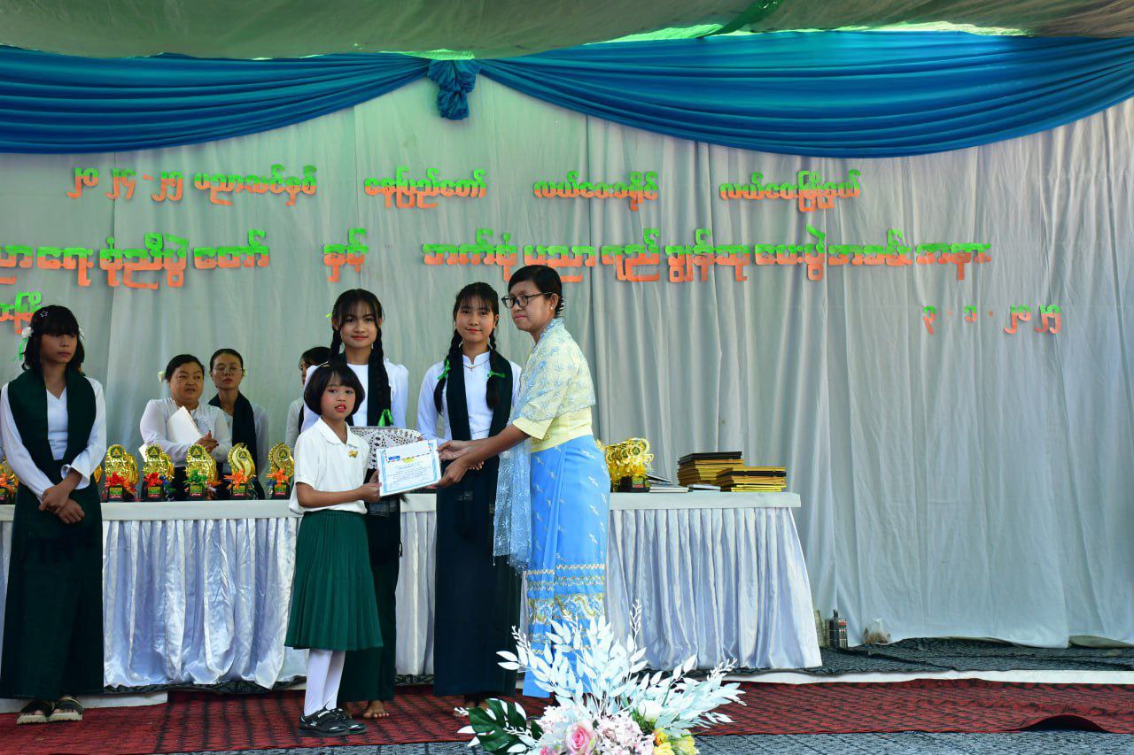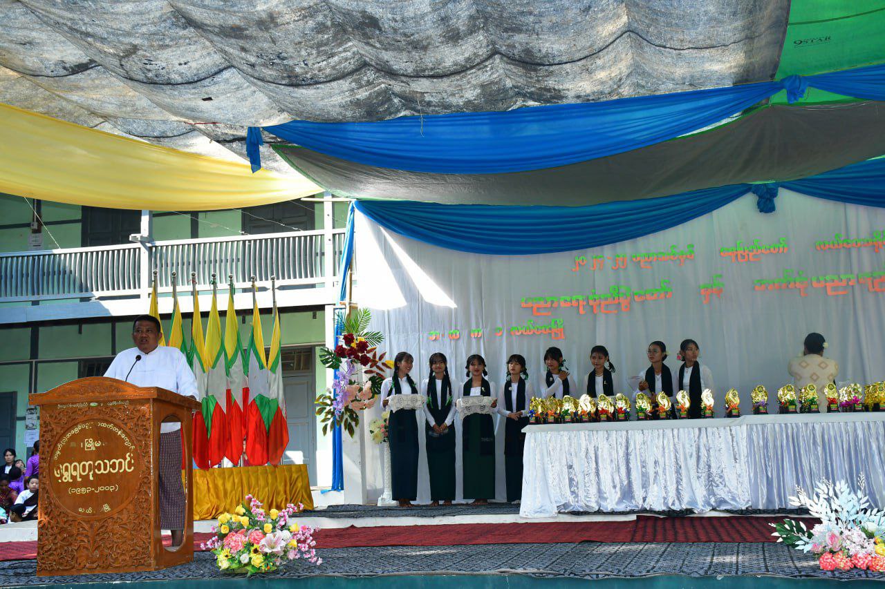 ဆက်လက်၍ မြို့နယ်စီမံအုပ်ချုပ်ရေးအဖွဲ့၊ အဖွဲ့ဝင် ဗိုလ်မှူးရာဇာနှင့် တာဝန်ရှိသူများက တိုင်းဒေသကြီး၊ ခရိုင်၊ မြို့နယ်အဆင့်များတွင် အားကစားထူးချွန်ဆုရရှိသူများ၊ အထိမ်းအမှတ်နေ့ ပြိုင်ပွဲများ၊ ကျောင်းသားအားကစား ပြိုင်ပွဲများနှင့် အတန်းအလိုက် ဘာသာရပ်ထူးချွန်ဆုရရှိသူ ဆရာ၊ ဆရာမများနှင့် ကျောင်းသား၊ ကျောင်းသူများအား ဂုဏ်ပြုမှတ်တမ်းနှင့် ဂုဏ်ပြုဆုငွေများ အသီးသီး ပေးအပ်ချီးမြှင့်ခဲ့သည်။ ထို့နောက် အမှတ်(၁) အခြေခံပညာအထက်တန်းကျောင်းမှ ကျောင်းသား၊ ကျောင်းသူလေးများက အဆိုအကများဖြင့် ဖျော်ဖြေခဲ့ကြောင်း သိရသည်။