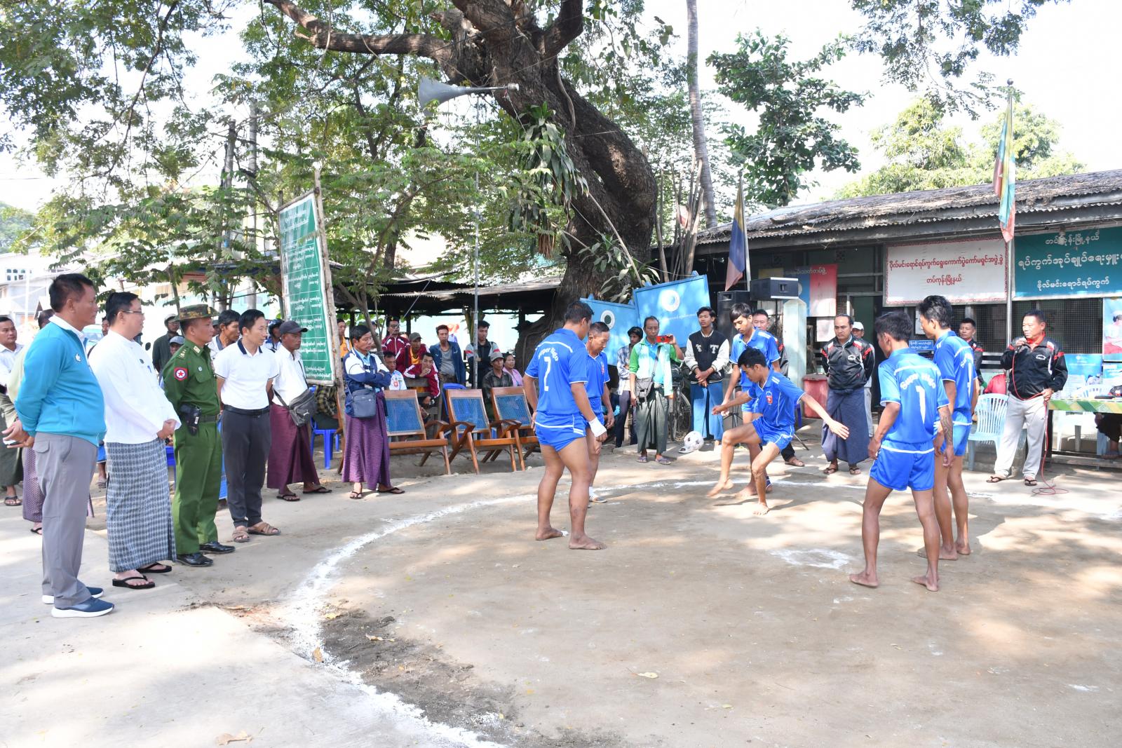 ထိုကွင်းဆင်းကြည့်ရှုရာတွင် မြို့နယ်စီမံအုပ်ချုပ်ရေးအဖွဲ့ဥက္ကဋ္ဌနှင့် မြို့နယ်စက်မှုလယ်ယာဦးစီးမှူး ဦးမျိုးနိုင်ဦးတို့က စက်ယန္တရားများဖြင့် ဖယ်ရှားဆောင်ရွက်ပြီးစီးမှုနှင့် ကျန်ရှိသည့်ဧကများ ဆက်လက်ဆောင်ရွက်ရမည့်အစီအမံများ ရှင်းလင်းတင်ပြကြရာ နေပြည်တော်ကောင်စီဝင် ဗိုလ်မှူးကြီးရဲမိုးနှင့် ဦးဇေယျာလင်းတို့က လိုအပ်သည်များ ဆွေးနွေးမှာကြားခဲ့ပြီးနာက် (၇၇) နှစ်မြောက် လွတ်လပ်ရေးနေ့အထိမ်းအမှတ်အဖြစ် မြို့နယ်အားကစားကွင်းတွင် ကျင်းပဆောင်ရွက်သည့် အပြေး၊ အိတ်စွပ်၊ အာလူးကောက်နှင့် အားကစားမျိုးစုံပြိုင်ပွဲ၊ မြို့နယ်စီမံအုပ်ချုပ်ရေးအဖွဲ့ဥက္ကဋ္ဌဖလား အလွတ်တန်းအမျိုးသားဘော်လီဘောပြိုင်ပွဲ တတိယလုပွဲစဉ်အား ကြည့်ရှုအားပေးခဲ့ပြီး ဗိုလ်မင်းရောင်ရပ်ကွက်၊ ရပ်ကွက်အုပ်ချုပ်ရေးမှူးရုံးရှေ့ကျင်းပသည့် အလှခတ်ခြင်းဝိုင်းပြိုင်ပွဲအား ကြည့်ရှုအားပေး၍ ဆုငွေများ ပေးအပ်ချီးမြှင့်ခဲ့သည်။