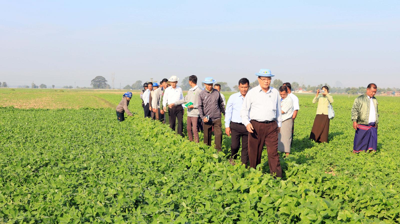 ဦးစွာ ပြည်နယ်ဝန်ကြီးချုပ်နှင့်အဖွဲ့သည် ဘားအံမြို့နယ်၊ ထန်းတပင်ကျေးရွာ ကွင်းအမှတ် ၁၂၀၇-က၊ ထန်းတပင်ကွင်းရှိ ဆောင်းသီးနှံ မြေပဲ၊ ပဲတီစိမ်း၊ ပဲပုတ်နှင့် ပဲအမျိုးမျိုး တစ်ကွင်းတစ်ဆက်တည်း ၄၁၈ ဧက စိုက်ပျိုးဖြစ်ထွန်းနေမှု၊ ရေကြီးနစ်မြုပ်ပြီး မိုးစပါးပြန်လည်စိုက်ပျိုးနိုင်ခြင်းမရှိသည့် စိုက်ဧကများတွင် ဆောင်းသီးနှံများ အစားထိုးပြန်လည်စိုက်ပျိုးဖြစ်ထွန်းနေမှု၊ ကွင်းအမှတ် ၁၂၀၇ ဝါဆူးကွင်းရှိ ဆောင်းသီးနှံ မြေပဲ၊ ပဲတီစိမ်း၊ ပဲပုတ်နှင့်ပဲအမျိုးမျိုး တစ်ကွင်းတစ်ဆက်တည်းဧက ၄၈၁ ဧက စိုက်ပျိုးဖြစ်ထွန်းနေမှုနှင့် ရေကြီးနစ်မြုပ်ပြီး မိုးစပါးပြန်လည်စိုက်ပျိုးနိုင်ခြင်းမရှိသည့် စိုက်ဧကများတွင် ဆောင်းသီးနှံများ အစားထိုးပြန်လည်စိုက်ပျိုးဖြစ်ထွန်းနေမှုများကို လှည့်လည်ကြည့်ရှုအားပေးရာ ပြည်နယ်စိုက်ပျိုးရေးဦးစီးဌာန၊ မြေစာရင်းဦးစီးဌာနတို့မှ တာဝန်ရှိသူများက ၂၀၂၄-၂၀၂၅ ခုနှစ် ဆောင်းမြေပဲ ၃၀၁၉၀ ဧကစိုက်ပျိုးရန်လျာထားပြီး ဒီဇင်ဘာလကုန်ထိ ၃၁၆၁၈ ဧကစိုက်ပျိုးပြီးစီးမှု၊ ပဲတီစိမ်း ၁၇၇၇၇ ဧကစိုက်ပျိုးရန် လျာထားပြီး ၁၈၅၄၆ ဧက စိုက်ပျိုးပြီးစီးမှု၊ ပဲပုတ် ၁၁၃၉၆ ဧက လျာထားပြီး ၁၂၆၀၀ ဧက စိုက်ပျိုးပြီးစီးမှု စသည်ဖြင့် ဆောင်းသီးနှံများ လျာထားဧကထက် ပြည့်မီကျော်လွန်စိုက်ပျိုးပြီးစီးမှု အခြေအနေများကို ရှင်းလင်းတင်ပြရာ ပြည်နယ်ဝန်ကြီးချုပ်က တစ်ဧကပန်းတိုင်ရည်မှန်းချက်အထွက်နှုန်း ပြည့်မီကျော်လွန်ရေး တောင်သူစည်းရုံးပညာပေး ဆောင်ရွက်ရန် တာဝန်ရှိသူများအား မှာကြားသည်။