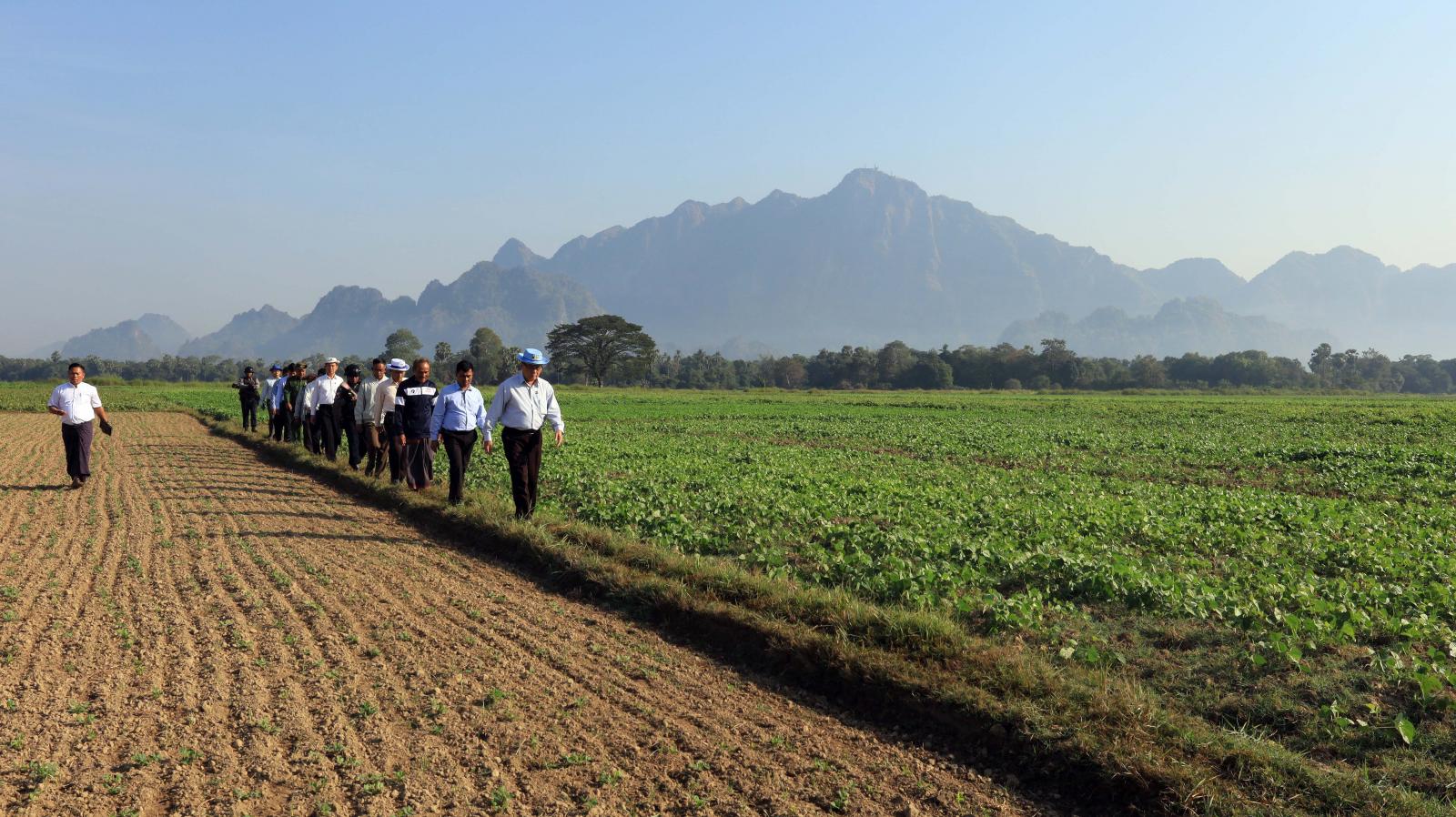 ကရင်ပြည်နယ်ဝန်ကြီးချုပ် ဦးစောမြင့်ဦးသည် ပြည်နယ်အစိုးရအဖွဲ့ဝင်များ၊ ဌာနဆိုင်ရာ တာဝန်ရှိသူများလိုက်ပါ၍ ယနေ့နံနက်ပိုင်းက ဘားအံမြို့နယ်အတွင်း အောင်မြင်ဖြစ်ထွန်းနေသော ဆောင်းသီးနှံစိုက်ခင်းများအား လှည့်လည်ကြည့်ရှုအားပေးခဲ့ကြသည်။