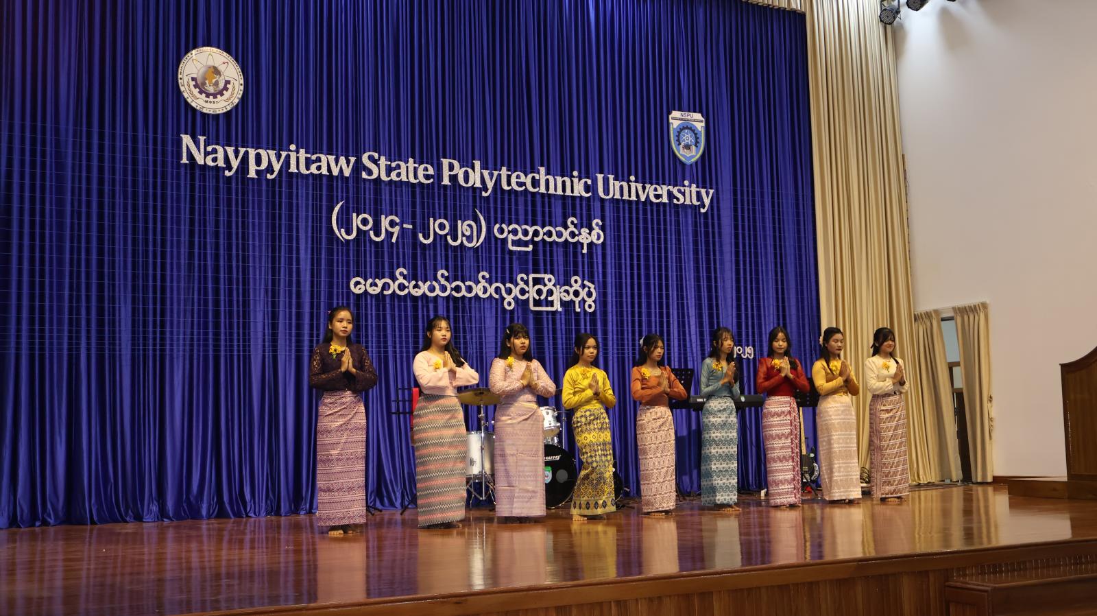 ယင်းနောက် Naypyitaw State Polytechnic University ကျောင်းသား ကျောင်းသူများက “သင်္ကြန်မိုး” တေးသီချင်းဖြင့် ဖွင့်လှစ်ကပြဖျော်ဖြေကာ အစီအစဉ်အတိုင်း ဆက်လက်ကျင်းပဆောင်ရွက်ခဲ့ကြောင်း သတင်းရရှိသည်။