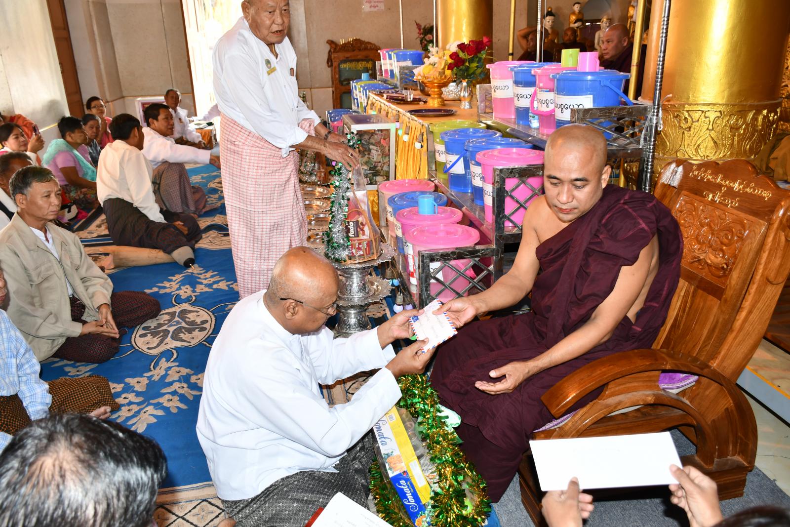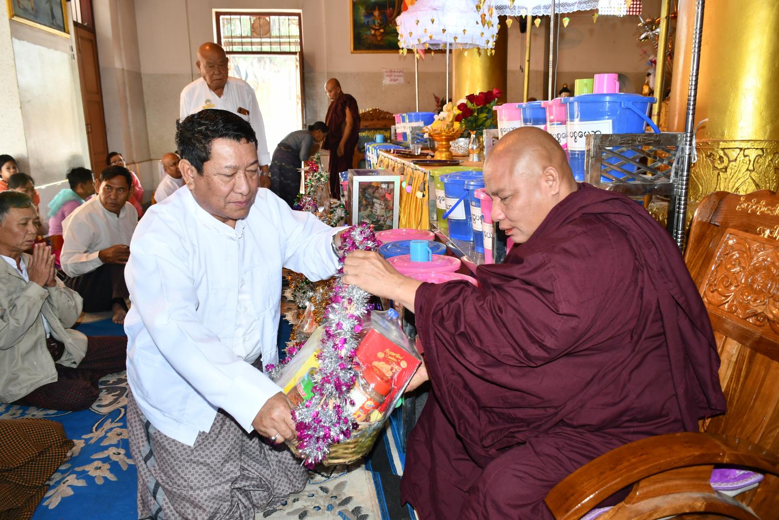 ဆက်လက်၍ ညီနောင် သက်သက်လွတ်ကျောင်းတိုက်ဆရာတော် မဟာသဒ္ဓမ္မဇောတိကဓဇဦးအာသီထံမှ ခရိုင်စီမံအုပ်ချုပ်ရေးအဖွဲ့ အဖွဲ့ဝင်(၂) ဦးစိန်သောင်း၊ ခရိုင်နှင့်မြို့နယ်အဆင့် ဌာနဆိုင်ရာတာဝန်ရှိသူများနှင့် ဧည့်ပရိသတ်အပေါင်းတို့က ငါးပါးသီလခံယူဆောက်တည်ကြပြီး ဆရာတော်၊ သံဃာတော်အရှင်သူမြတ်တို့အား လှူဖွယ်ဝတ္ထုပစ္စည်းများ ဆက်ကပ်လှူဒါန်းပေးကာ လှူဒါန်းမှုအစုစုတို့အတွက် ရေစက်သွန်းချ အမျှပေးဝေပြီးအခမ်းအနားကို ဗုဒ္ဓသာသနံစိရံတိဌတု သုံးကြိမ်ရွတ်ဆိုဆုတောင်း၍ အသံမစဲမဟာပဋ္ဌာန်းရွတ်ဖတ် ပူဇော်ခြင်း ပဋ္ဌာန်းသိမ်းအောင်ပွဲအခမ်းအနား အောင်မြင်စွာ ပြီးမြောက်ခဲ့ကြောင်း သိရသည်။