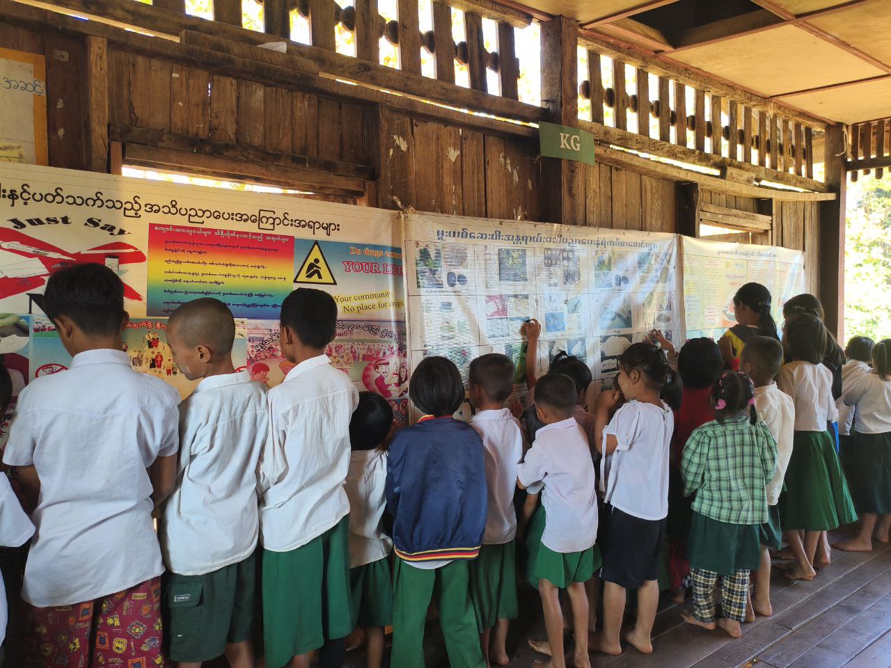 ထို့နောက် ကျောင်းသား/သူများအား ပြန်ကြားရေးနှင့်ပြည်သူ့ဆက်ဆံရေးဦးစီးဌာနမှ ပြသထားသော မူးယစ်ဆေးဝါးအန္တရာယ်နှင့်ပတ်သက်၍ အသိပညာပေး နံရံကပ်စာစောင်များကို ပြသထားရာ ကျောင်းသား/သူများက စိတ်ဝင်စားစွာ ကြည့်ရှုလေ့လာမှတ်သားခဲ့ကြောင်း သိရသည်။