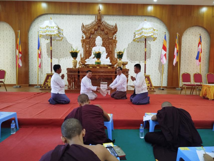 (၁၁) ကြိမ်မြောက် ရန်အောင်မြင် သာသနာလင်္ကာရအကျော် စာတော်ပြန်ပွဲဖြေဆိုနေသည့် စာဖြေသံဃာတော်များအတွက် မြို့နယ်အတွင်း အလှူရှင်ပြည်သူများ၊ မြို့နယ်အဆင့် ဌာနဆိုင်ရာများနှင့် ရပ်/ကျေးအုပ်ချုပ်ရေးမှူးတို့ စုပေါင်း၍ ရေသန့်/ အချိုရည်များ ဆပ်ကပ်နိုင်ရေးအတွက် အလှူတော်ငွေကျပ် သိန်းသုံးဆယ်ကို နေပြည်တော်ကောင်စီဝင် ဦးမြင့်စိုးမှ ပေးအပ်လှူဒါန်းရာ သာသနာလင်္ကာကျော်အသင်းမှ တာဝန်ရှိသူများက လက်ခံရယူပါသည်။