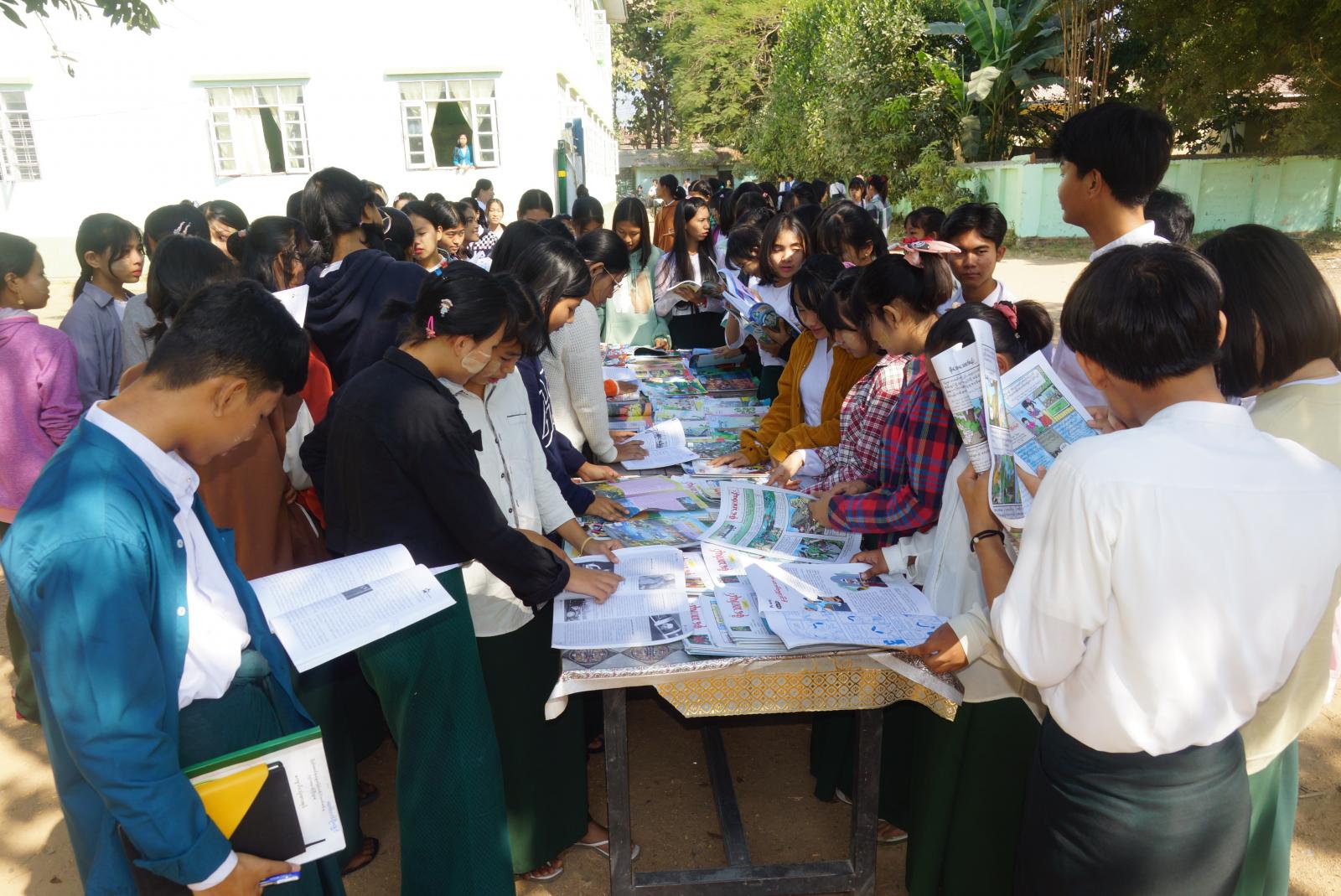 ထို့နောက် ဟောပြောပွဲအပြီးတွင် ဇမ္ဗူသီရိမြို့နယ် ပြန်ကြားရေးနှင့်ပြည်သူ့ဆက်ဆံရေးဦးစီးဌာနမှ တာဝန်ရှိသူများက လူငယ်ရေးရာနှင့်ပတ်သက်သည့် စာအုပ်များ၊ လူငယ်ရေးရာ အသိပညာပေးနံရံကပ်စာစောင်များနှင့် မူးယစ်ဆေးဝါးအန္တရာယ် အသိပညာပေးနံရံကပ်စာစောင်များကို ခင်းကျင်းပြသခဲ့ရာ ကျောင်းသား၊ ကျောင်းသူများက စိတ်ပါဝင်စားစွာ ဖတ်ရှုလေ့လာခဲ့ကြကြောင်း သိရသည်။