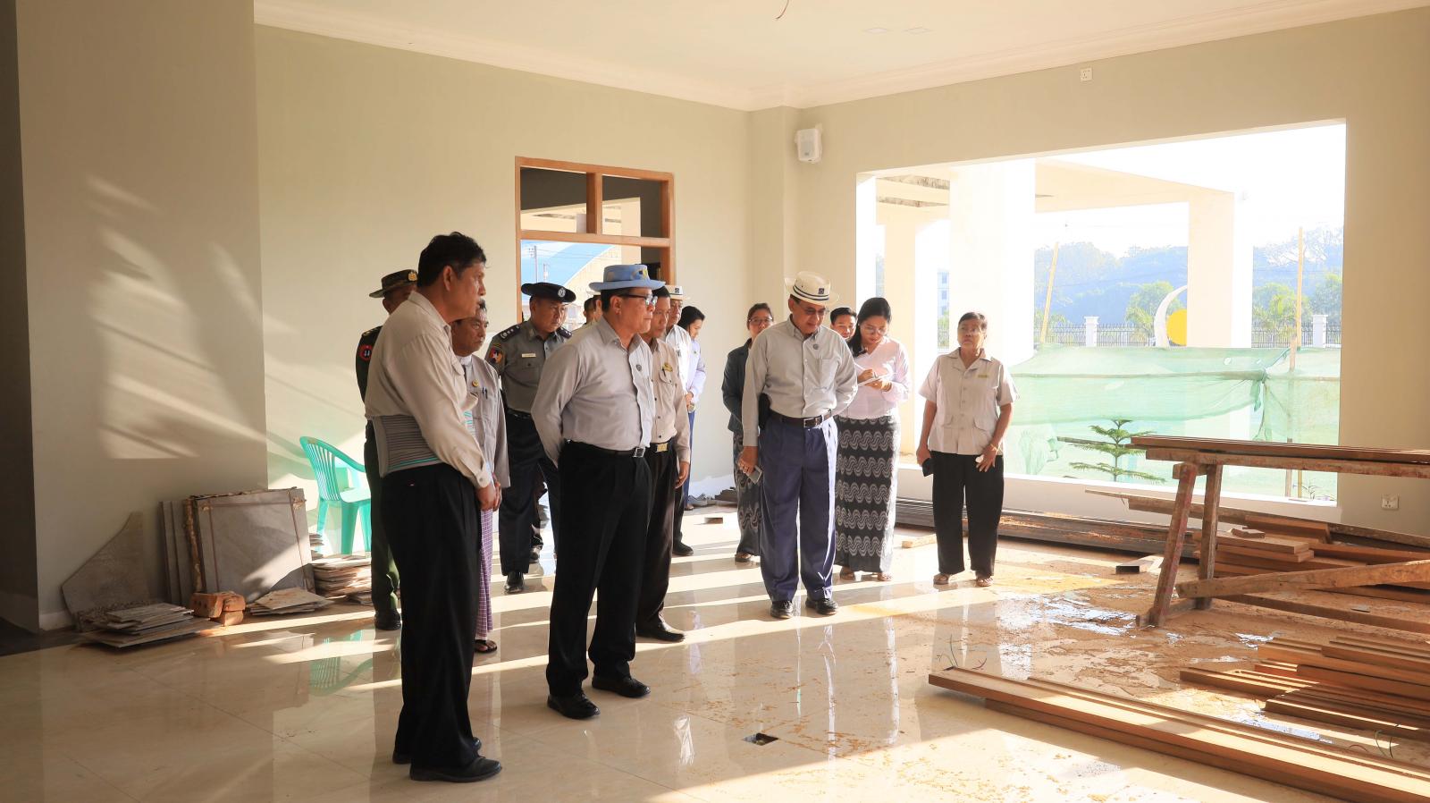 ထိုသို့တည်ဆောက်ပြီးစီးနေမှုအား ကရင်ပြည်နယ်ဝန်ကြီးချုပ် ဦးစောမြင့်ဦးနှင့် တာဝန်ရှိသူများသည် ယနေ့နံနက်ပိုင်းကသွားရောက်ကြည့်ရှုစစ်ဆေးရာ အဆောက်အဦအထူးအဖွဲ့ (၁၃)မှ တာဝန်ရှိသူများက ဧည့်ရိပ်သာအဆောက် အဦအထူးအချောသတ်လုပ်ငန်း၊ လျှပ်စစ်လုပ်ငန်း၊ ရေသန့်လုပ်ငန်း၊ ဆက်စပ်ဝန်ဆောင်မှုလုပ်ငန်းများဆောင်ရွက်နေမှုအခြေအနေများကို ရှင်းလင်းတင်ပြကြပြီး ပြည်နယ်ဝန်ကြီးချုပ်က သတ်မှတ်စံချိန်စံညွှန်းများနှင့်အညီ အချိန်မီပြီးစီးနိုင်ရေး ကြိုးပမ်းဆောင်ရွက်ကြရန်မှာကြားကာဧည့်ရိပ်သာအဆောက်အဦ အချောသတ်လုပ်ငန်း ဆောင်ရွက်နေမှုနှင့် ဧည့်ရိပ်သာနှင့်ဆက်စပ်သော(၅၆ပေ x ၅၀ပေ)RC (၂)ခန်းတွဲ(၄) ထပ် ညွှန်ကြားရေးမှူးအိမ်ရာ အဆောက်အဦ(၂)လုံး တည်ဆောက်ခြင်းလုပ်ငန်းခွင်တို့အား လှည့်လည်ကြည့်ရှုစစ်ဆေး၍ တာဝန်ရှိသူများအား လိုအပ်သည်များမှာကြားခဲ့ သည်။
