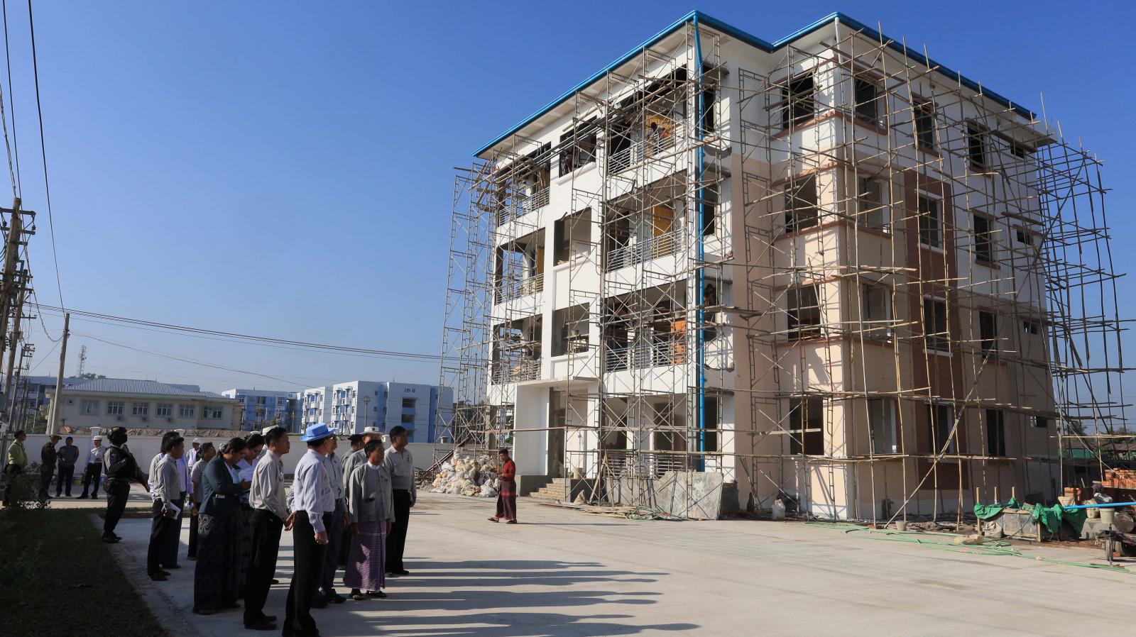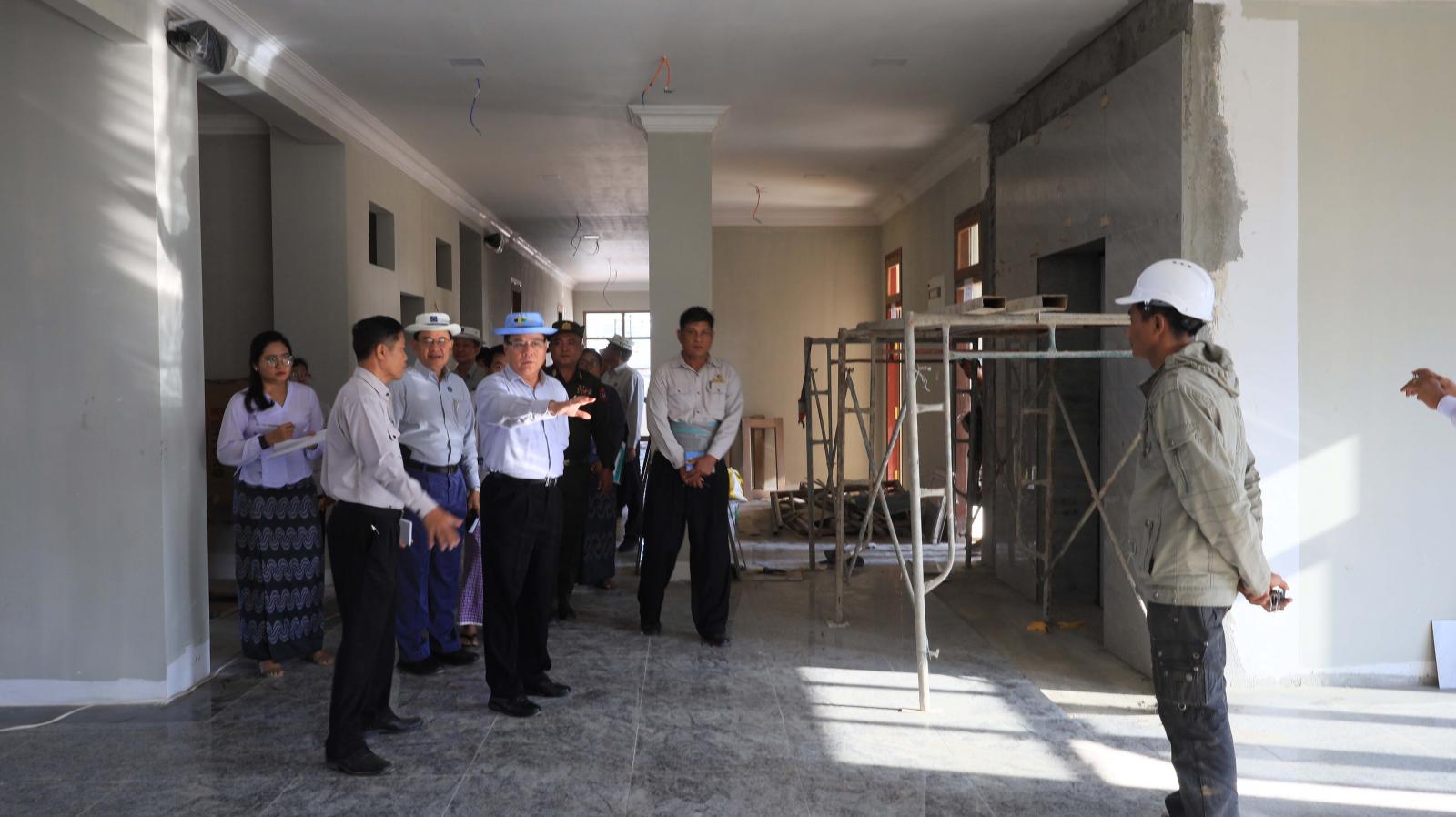 ဆက်လက်၍ ပြည်နယ်ဝန်ကြီးချုပ်နှင့်အဖွဲ့သည် ပြည်နယ်ပြည်သူ့ဆေးရုံကြီး ပရဝုဏ်အတွင်း အဆောက်အဦ အထူးအဖွဲ့(၁၃)မှ တာဝန်ယူတည်ဆောက်လျက်ရှိသော (၁၇၇ပေ x ၃၄ပေ)RC (၆)ခန်းတွဲ(၄)ထပ် ဝန်ထမ်းအိမ်ရာ တည်ဆောက်ခြင်းလုပ်ငန်းအား သွားရောက်ကြည့်ရှုစစ်ဆေးရာ ပြည်သူ့ကျန်းမာရေးဦးစီးဌာနမှူးနှင့် အဆောက်အဦ အထူးအဖွဲ့(၁၃)မှတာဝန်ရှိသူများက တည်ဆောက်ရေးလုပ်ငန်း ၈၅ ရာခိုင်နှုန်းကျော်ပြီးစီးမှုနှင့် လုပ်ငန်းဆောင်ရွက်နေမှုအခြေအနေများကို ရှင်းလင်းတင်ပြကြပြီး ပြည်နယ်ဝန်ကြီးချုပ်က လိုအပ်သည်များမှာကြားကာ အဆောက်အဦ အားလှည့်လည်ကြည့်ရှုစစ်ဆေးခဲ့ကြကြောင်း သိရသည်။