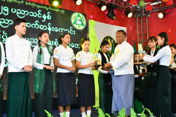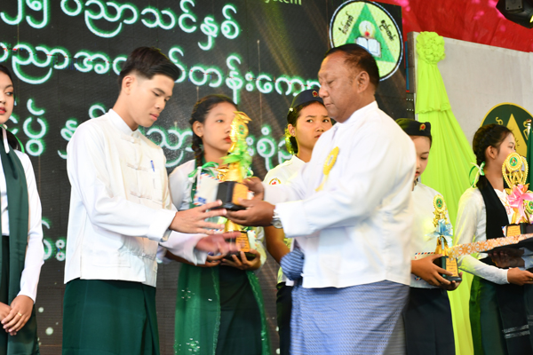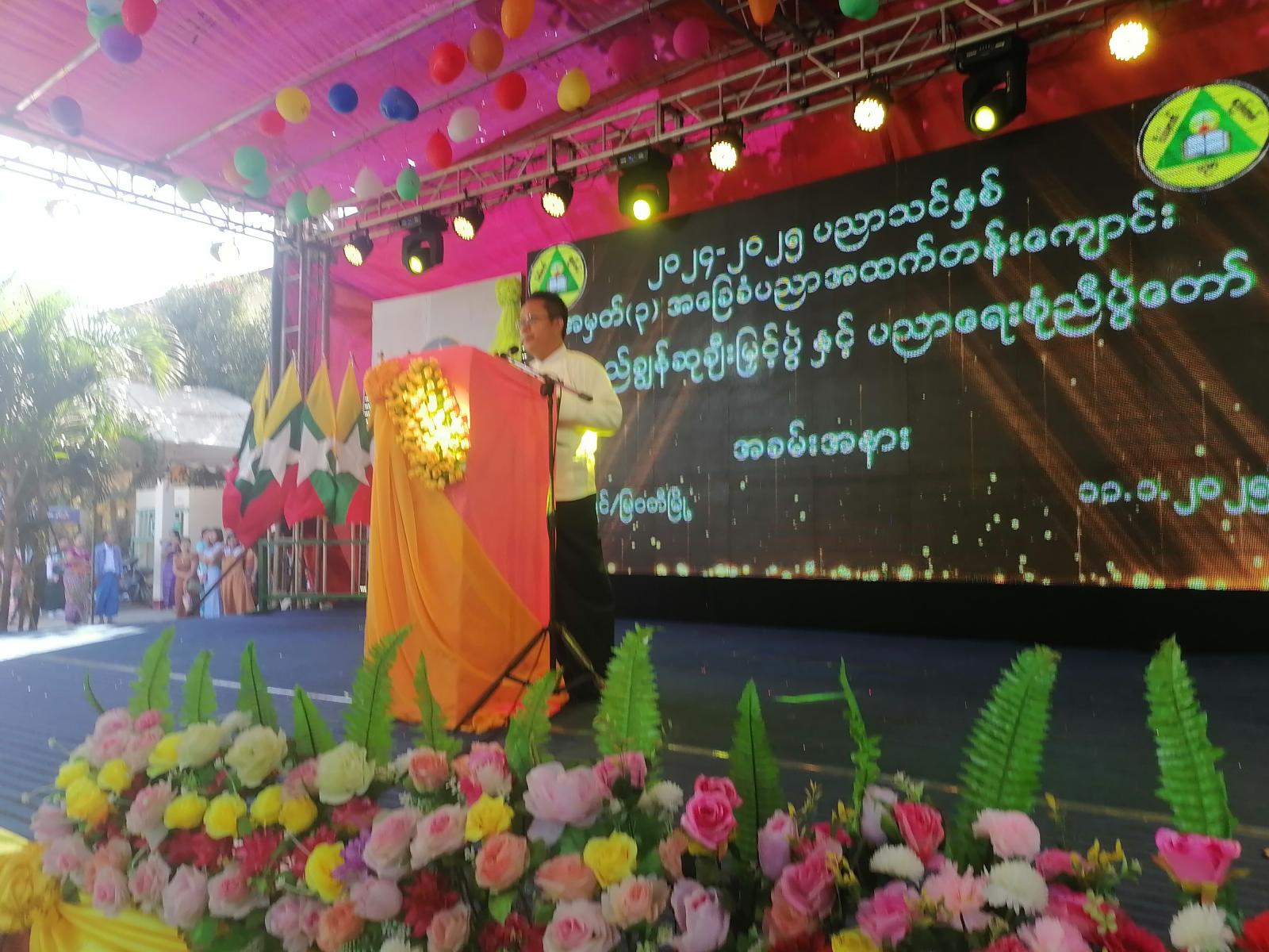 ဆက်လက်၍ ဆုချီးမြှင့်ပွဲကျင်းပခဲ့ရာ နိုင်ငံတော်အဆင့်ပညာတန်ဆောင်ဆောင်းပါးပြိုင်ပွဲ တတိယဆု၊ ပညာရည်ချွန်ဆုများ၊ မြို့နယ်အဆင့် လူရည်ချွန်ဆုများ၊ (၂၅)ကြိမ်မြောက် မြန်မာ့ရိုးရာ ယဉ်ကျေးမှု အဆို၊ အက၊ အရေး၊ အတီးပြိုင်ပွဲဗဟို/ပြည်နယ်အဆင့် ကဗျာလွတ်အက ရွှေတံဆိပ်ဆုရရှိသူများ၊ ပြည်နယ်/မြို့နယ် အဆင့်(၁၀-၁၅)၊(၁၅-၂၀)အမျိုးသား/အမျိူးသမီး အဆို/အက ရွှေတံဆိပ်၊ ငွေတံဆိပ်ဆုရရှိသူများ၊ (၁၀၄)နှစ် မြောက်အမျိူးသားအောင်ပွဲနေ့အထိမ်းအမှတ် ပြည်နယ်/မြို့နယ်အဆင့် ပြိုင်ပွဲအလိုက်ဆုရရှိသူများ၊ နိုင်ငံတော်အဆင့် လူငယ်စကားဝိုင်း ဆွေးနွေးပွဲဂုဏ်ပြုဆုရရှိသူ၊ ပြည်နယ်/မြို့နယ်အဆင့် စွမ်းရည်ပြိုင်ပွဲဆုရရှိသူများ၊ မြို့နယ်အဆင့် အထိမ်းအမှတ်နေ့အလိုက် ဆုရရှိသူများ၊ မြို့နယ်အဆင့်ဘင်ခရာပြိုင်ပွဲဆုရရှိသူ၊ ကျောင်းပေါင်းစုံ ဘော်လီဘောနှင့် ဘောလုံး အားကစားပြိုင်ပွဲဆုရရှိသူများ၊ မြို့နယ်အဆင့် ကြက်ခြေနီသင်တန်း ထူးချွန်ဆုများနှင့် Grade အလိုက် A အဆင့်ရရှိသူများအား ခရိုင်စီမံအုပ်ချုပ်ရေးအဖွဲ့ အဖွဲ့ဝင်(၂) ဦးစိန်သောင်း၊ ခရိုင်ပညာရေးမှူး ဦးသန်းဆွေဦး၊ ပညာရွှေဖူး ကိုယ်ပိုင်အလယ်တန်းကျောင်း တည်ထောင်သူ မြို့မိ၊ မြို့ဖ ဦးသန်းရွှေ၊ ဌာနဆိုင်ရာတာဝန်ရှိသူများ၊ ကျောင်းအကျိုးတော်ဆောင်များနှင့် ဖိတ်ကြားထားသောဧည့်သည်တော်များက ဆုများချီးမြှင့်ပေးသည်။