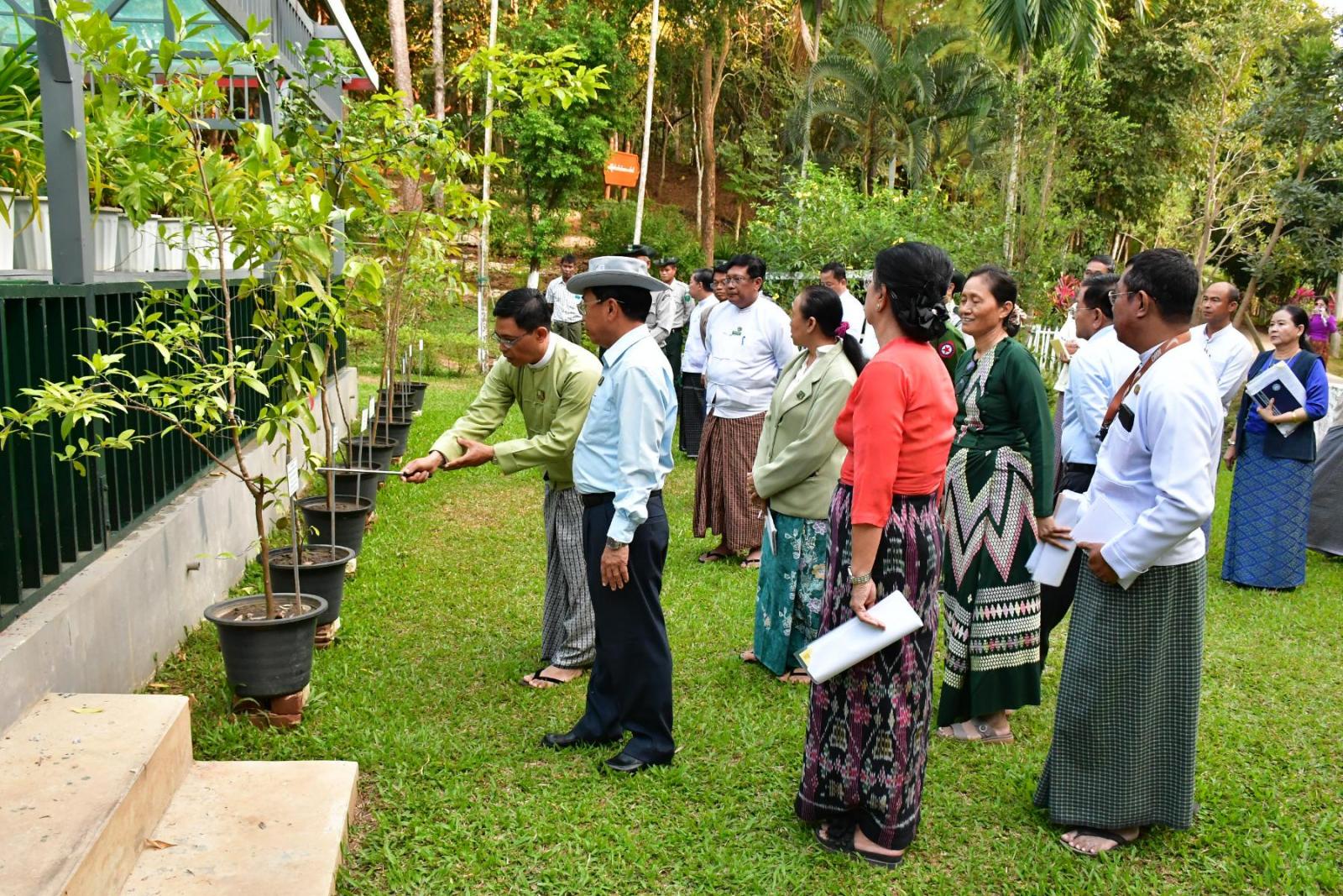 ဆက်လက်၍ နေပြည်တော်ကောင်စီဥက္ကဋ္ဌ ဦးသန်းထွန်းဦးသည် ဇမ္ဗူသီရိမြို့နယ်အတွင်းရှိ အမျိုးသားပရဆေးဥယျာဉ်သို့ သွားရောက်၍ ပရဆေးဥယျာဉ်အတွင်း သန့်ရှင်းသာယာရေးဆောင်ရွက်ထားရှိမှုအခြေအနေများ၊ ဆေးဖက်ဝင် ပရဆေးပျိုးပင်များ ပြုစုထိန်းသိမ်းထားရှိမှုအခြေအနေများကို လှည့်လည်ကြည့်ရှုစစ်ဆေးရာ တာဝန်ရှိသူများက လုပ်ငန်းဆောင်ရွက်ထားရှိမှုအခြေအနေ များနှင့် ဆေးဖက်ဝင်အပင်များ စိုက်ပျိုးထားရှိမှုအခြေအနေများကို ရှင်းလင်းတင်ပြကြရာ နေပြည်တော်ကောင်စီဥက္ကဋ္ဌ ဦးသန်းထွန်းဦးက သန့်ရှင်းသာယာလှပရေးကို အမြဲမပြတ် ဆောင်ရွက်ရန်နှင့် လိုအပ်သည်များကို ပေါင်းစပ်ဆောင်ရွက်ပေးခဲ့ကြောင်း သိရသည်။