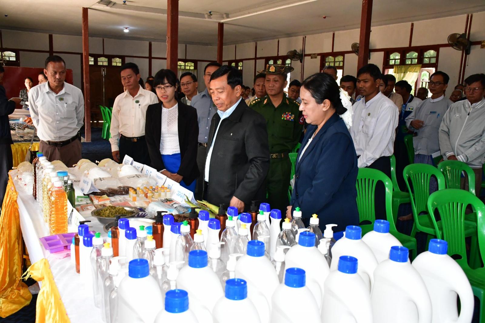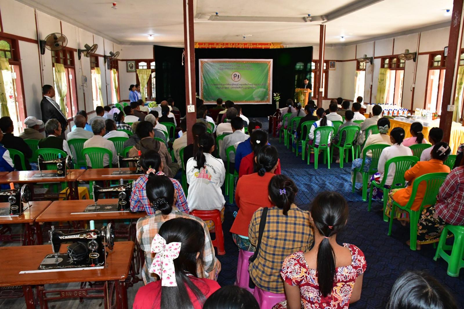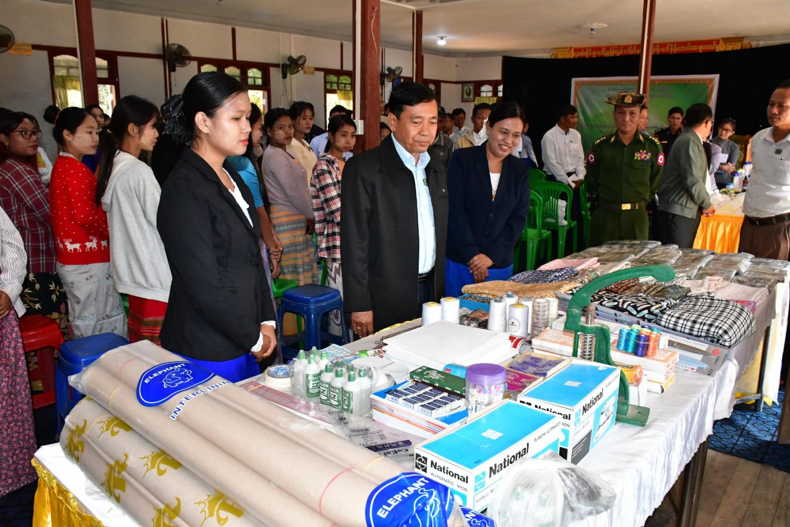ယနေ့ဖွင့်လှစ်သည့် စက်ချုပ်နည်းပညာသင်တန်းတွင် သင်တန်းသား/သင်တန်းသူ ၁၅ ဦး တက်ရောက်ပြီး သင်တန်းကာလမှာ ၄၅ ရက်ကြာ စာတွေ့လက်တွေ့ သင်ကြားပို့ချမှာဖြစ်ပြီး သင်တန်းပြီးဆုံးပါက သင်တန်းသားများအနက် ထူးချွန်ပြီး အမှန်တကယ်လုပ်ငန်းထူထောင် လိုသူ ငါးဦးကို ရွေးချယ်ကာ တစ်ဦးလျှင် ငွေကျပ် ၁၄ သိန်းနှင့် ညီမျှသော အပ်ချုပ်စက်၊ ဓါးစက်၊ ဘီတင်စက်၊ ထုပ်သီးရိုက်စက်စသည့် ပစ္စည်းလေးမျိုးကို ပေးအပ်သွားမှာဖြစ်ကြောင်း၊ လူသုံးကုန်ထုတ်လုပ်မှုနည်းပညာသင်တန်းတွင် သင်တန်းသား/သင်တန်းသူ ၁၄ ဦး တက်ရောက်ပြီး သင်တန်းကာလမှာ ၁၄ ရက်ကြာ စာတွေ့လက်တွေ့ သင်ကြားပို့ချမှာဖြစ်ပြီး သင်တန်းပြီးဆုံးပါက သင်တန်းသားများအနက် ထူးချွန်ပြီး အမှန်တကယ်လုပ်ငန်းထူထောင်လိုသူ ငါးဦးကို ရွေးချယ်ကာ တစ်ဦးလျှင် ငွေကျပ် ၁၄ သိန်းနှင့် ညီမျှသော ဆပ်ပြာမွှေစက်၊ စတီးကန်၊ Hand Mixer ၊ Blendar နှင့် ဂရမ်ချိန်စက် စသည့် ပစ္စည်းငါးမျိုးကို ပေးအပ်သွားမှာဖြစ်ကြောင်း သိရသည်။