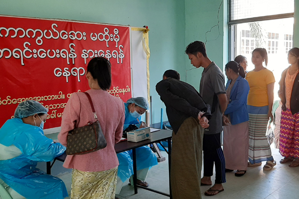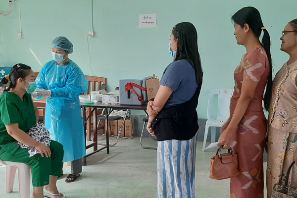 ကရင်ပြည်နယ်၊ မြဝတီမြို့နယ်အတွင်းရှိ ဌာနဆိုင်ရာဝန်ထမ်းများနှင့် ပြည်သူများအနေဖြင့် ကိုဗစ်-၁၉ ရောဂါ ကြိုတင်ကာကွယ်နိုင်ရန် ကာကွယ်ဆေးများ အကြိမ်ပြည့်ထိုးနှံပေးခြင်းနှင့် ထပ်ဆောင်းကာကွယ်ဆေးများ ထိုးနှံပေးခြင်းကို ဆောင်ရွက်ပေးလျက်ရှိရာ ယနေ့နံနက် ၁၀ နာရီတွင်မြဝတီခရိုင် ပြည်သူ့ဆေးရုံကြီး၌ Pfizer ကာကွယ်ဆေး ထပ်ဆောင်းထိုးနှံပေးသည်။
