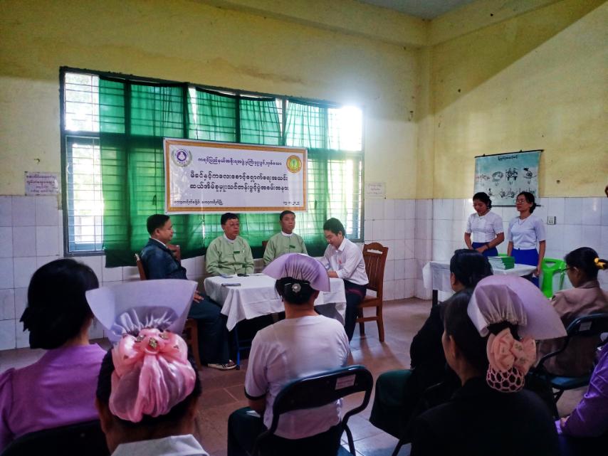 အခမ်းအနားတွင် မြို့နယ်စီမံအုပ်ချုပ်ရေးအဖွဲ့ဥက္ကဋ္ဌ ဦးကျော်ကျော်ဦးမှ အဖွင့်အမှာစကား ပြောကြားပြီး ခရိုင်ပြည်သူ့ဆေးရုံ လက်ထောက်ဆရာဝန် ဒေါက်တာစောအောင်အောင်မှ သင်တန်းဖွင့်လှစ်ရခြင်း၏ ရည်ရွယ်ချက်များအား ထပ်မံရှင်းလင်းပြောကြားခဲ့သည်။