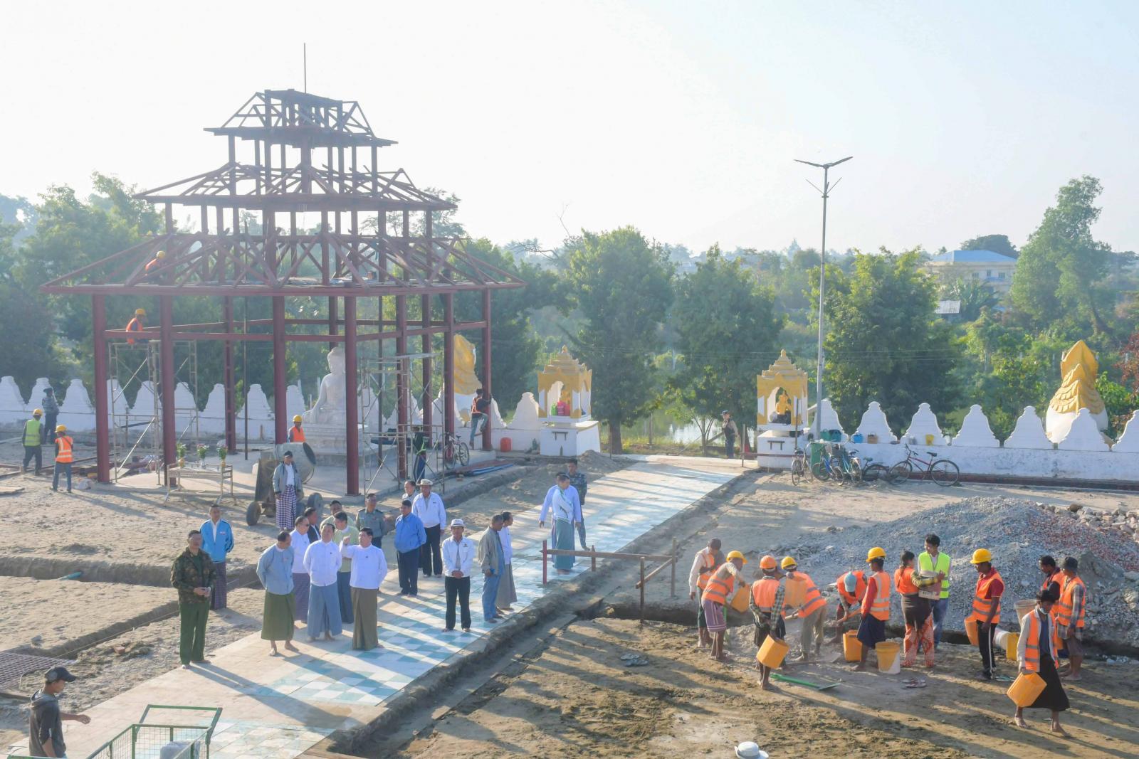 ရခိုင်ပြည်နယ်ဝန်ကြီးချုပ် ဦးထိန်လင်းသည် ပြည်နယ်အစိုးရအဖွဲ့ဝင်များ ဌာနဆိုင်ရာတာဝန်ရှိသူများနှင့်အတူ ယနေ့နံနက်ပိုင်းက စစ်တွေမြို့၊ လောကာနန္ဒာစေတီတော်မြတ်ကြီး ရင်ပြင်တော်နေပူခံကျောက်ပြားခင်းခြင်း လုပ်ငန်းဆောင်ရွက်နေမှုအား လှည့်လည်ကြည့်ရှုစစ်ဆေးကြသည်။