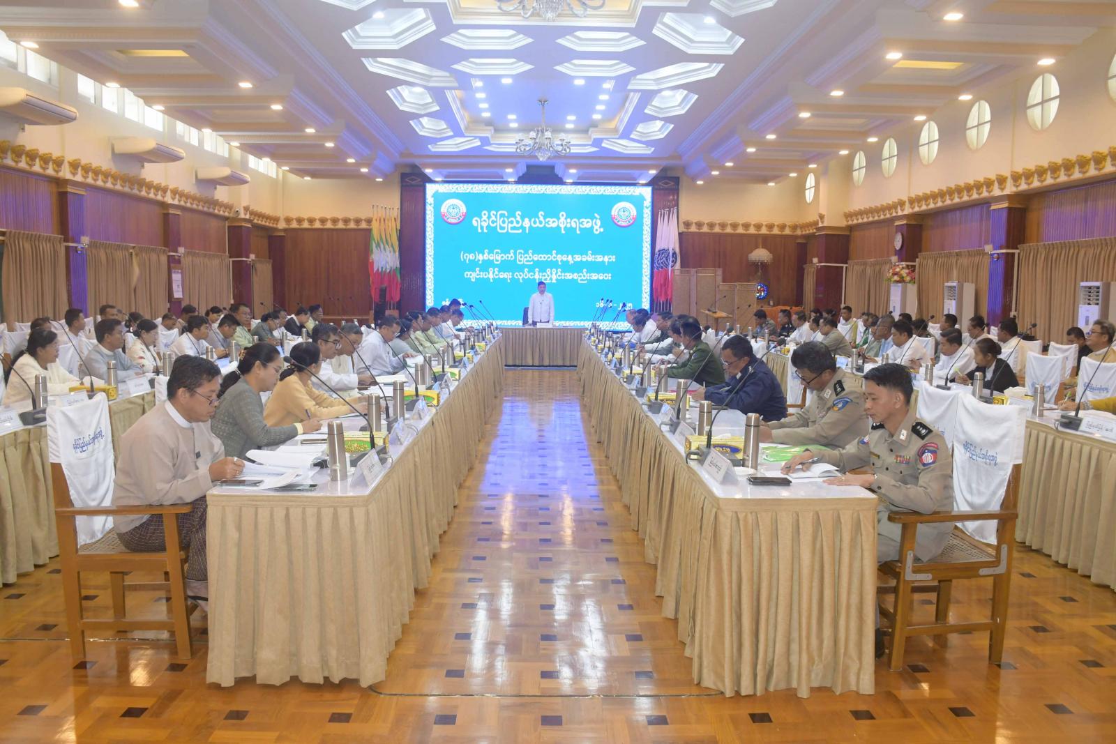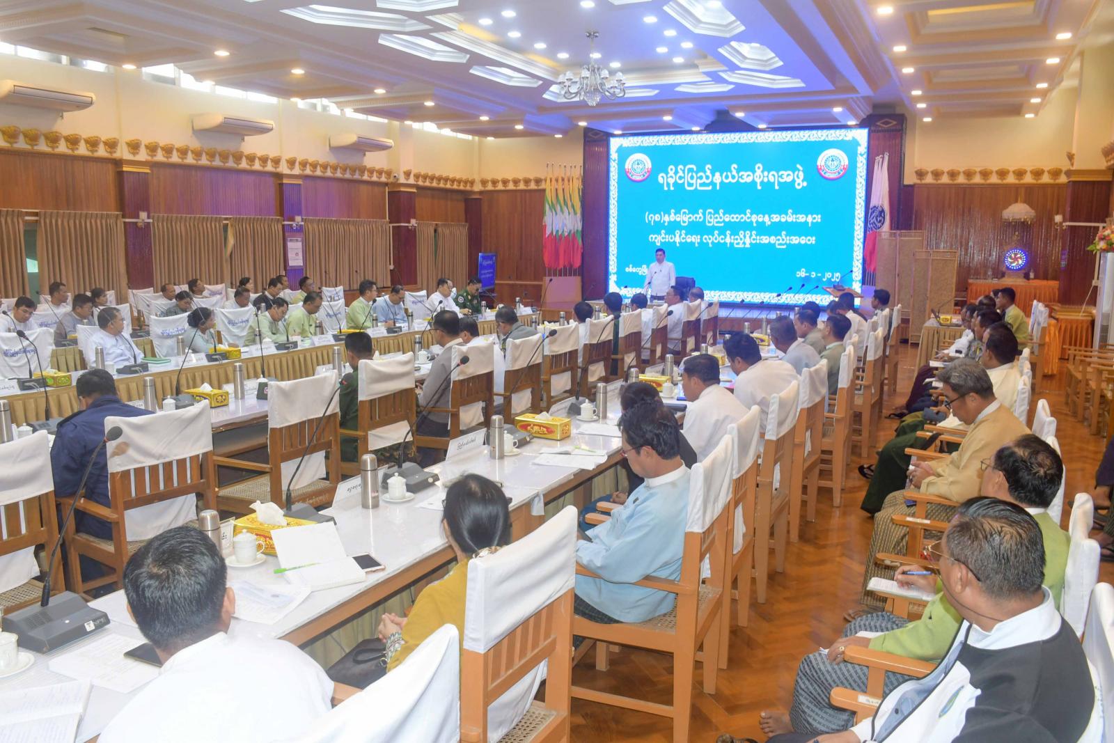 ထို့နောက် (၇၈) နှစ်မြောက်၊ ပြည်ထောင်စုနေ့အခမ်းအနားကျင်းပရေး ဦးစီးကော်မတီနှင့် လုပ်ငန်းကော်မတီများ ဖွဲ့စည်းတာဝန်ပေးအပ်ထားသည့် ကော်မတီဖွဲ့စည်းမိန့်နှင့် (၇၇) နှစ်မြောက် ပြည်ထောင်စုနေ့ အခမ်းအနားကျင်းပခဲ့မှုများအား ရခိုင်ပြည်နယ် အစိုးရအဖွဲ့ရုံး၊ ညွှန်ကြားရေးမှူး ဦးစိုးဝင်းက ရှင်းလင်းတင်ပြပြီး လုပ်ငန်းကော်မတီအတွင်းရေးမှူးများက မိမိတို့ကော်မတီအလိုက် အခမ်းအနားအောင်မြင်စွာ ကျင်းပနိုင်ရေး အတွက် ဆောင်ရွက်မည့်အစီအမံများကို ရှင်းလင်းတင်ပြကြသည်။