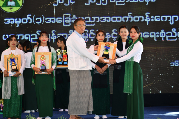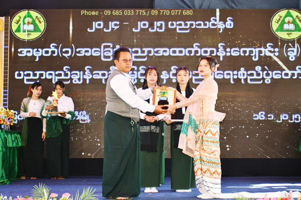ထို့နောက် ကျောင်းအုပ်ဆရာမကြီး ဒေါ်မာလာအောင်ကကျေးဇူးတင်စကား ပြန်လည်ပြောကြားပေးပြီး ၂၀၂၃-၂၀၂၄ ပညာသင်နှစ်နှင့် ၂၀၂၄-၂၀၂၅ ပညာသင်နှစ်တို့၌ ကာယ၊ ဉာဏပိုင်းတွင် ထူးချွန်သော ဆရာ၊ ဆရာမများနှင့် ကျောင်းသား၊ ကျောင်းသူများအား ဌာနဆိုင်ရာတာဝန်ရှိသူများ၊ ကျောင်းအကျိုးတော်ဆောင်များနှင့် ဖိတ်ကြားထားသော ဧည့်သည်တော်များက ဆုများချီးမြှင့်ပေးပြီး ကျောင်းသား၊ ကျောင်းသူလေးများက အကပဒေသာများဖြင့် ဖျော်ဖြေတင်ဆက်ခဲ့ကြကြောင်း သိရသည်။