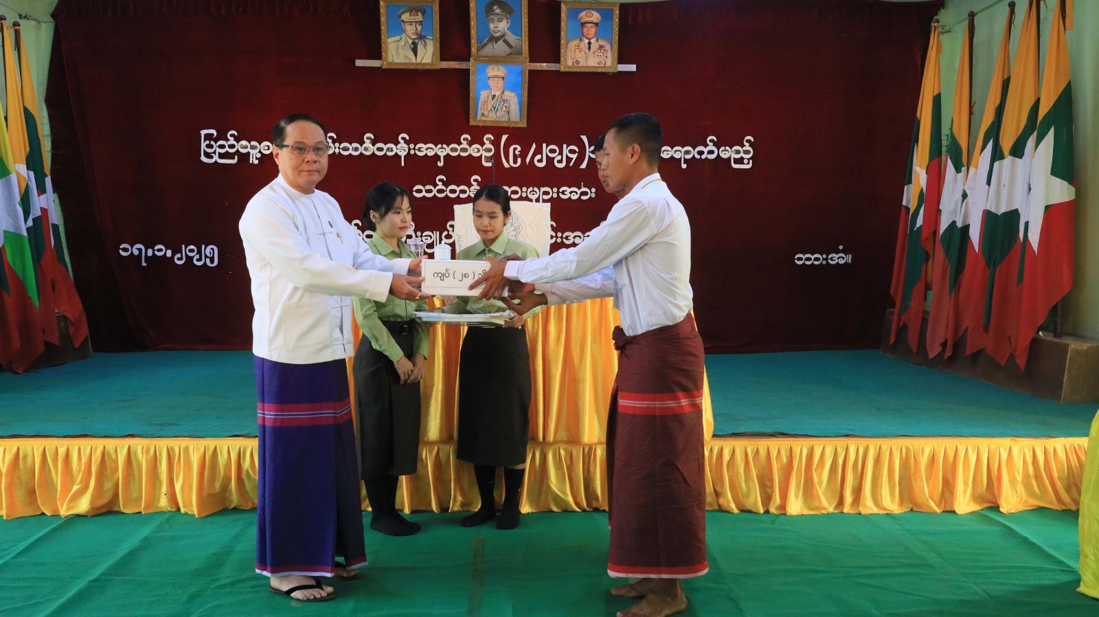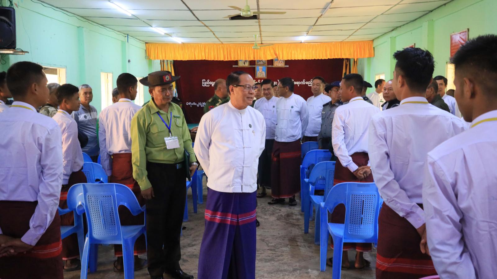 ထို့နောက် ပြည်နယ်ဝန်ကြီးချုပ်၊ အရှေ့တောင်တိုင်းစစ်ဌာနချုပ် တိုင်းဦးစီးချုပ်နှင့် တာဝန်ရှိသူများသည် ပြည်သူ့စစ်မှုထမ်းသင်တန်းအမှတ်စဉ် (၉)သို့တက်ရောက်မည့် နိုင်ငံ့သားကောင်းရတနာများ အား တစ်ဦးချင်းရင်းနှီး နွေးထွေးစွာ တွေ့ဆုံနှုတ်ဆက်၍ အားပေးစကားများပြောကြားပြီး လိုအပ်သည်များအား တာဝန်ရှိသူများနှင့် ပေါင်းစပ်ညှိနှိုင်းဖြည့်ဆည်းဆောင်ရွက်ပေးခဲ့ကြောင်း သိရသည်။