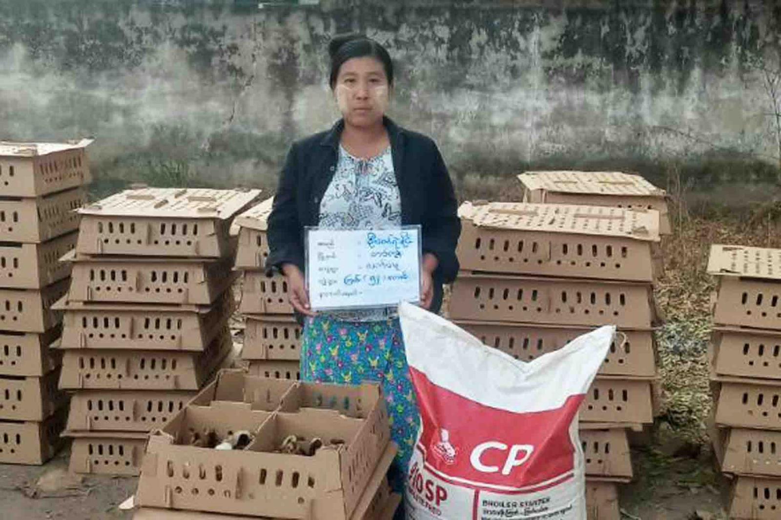 အဆိုပါပေးအပ်ရာတွင် မြို့နယ်အထွေထွေအုပ်ချုပ်ရေးဦးစီးဌာနမှ ဒုဦးစီးမှူး ဦးအောင်မြင့်မိုး၊ မြို့နယ်မွေးမြူရေးနှင့်ကုသရေးဦးစီးဌာနမှ လက်ထောက်ညွှန်ကြားရေးမှူး ဒေါက်တာဌေးထိုက်နှင့် တာဝန်ရှိသူများက ကံကြီးကျေးရွာအုပ်စုတွင် ဆုံးရှုံးခဲ့သည့် ဒေသကြက်ပိုင်ရှင် ၂၆ ဦးအတွက် ကြက်ကောင်ရေ ၃၈၅၇ ကောင်အား ပိုင်ရှင်များထံ လွှဲပြောင်းပေးအပ်ခဲ့ကြောင်း သိရသည်။