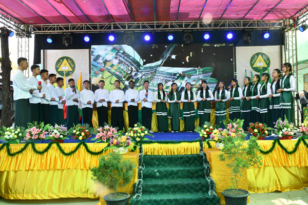 ဦးစွာ ဖိတ်ကြားထားသော ဧည့်သည်တော်များက အခမ်းအနားကို ဖဲကြိုးဖြတ်ဖွင့်လှစ်ပေးကာ Grade-9 မှ ကျောင်းသား၊ ကျောင်းသူလေးများက “ပညာပန်းခင်း” တေးသီချင်းဖြင့် ဖျော်ဖြေတင်ဆက်ပေးပြီး မြဝတီမြို့နယ်ပညာရေးမှူး ဦးမိုးကျော်က စုံညီပွဲတော်ကျင်းပရခြင်း ရည်ရွယ်ချက်နှင့် လူ့ဘောင်အဖွဲ့အစည်း အခြေခံအုတ်မြစ်ခိုင်မာတည်မြဲရေးအတွက် ပညာရေးကဏ္ဍ မြှင့်တင်ပေးရန် လိုအပ်ကြောင်းဖြင့် အဖွင့်အမှာစကား ပြောကြားသည်။
