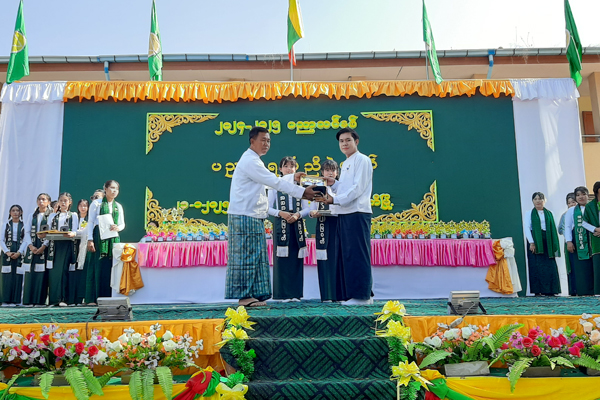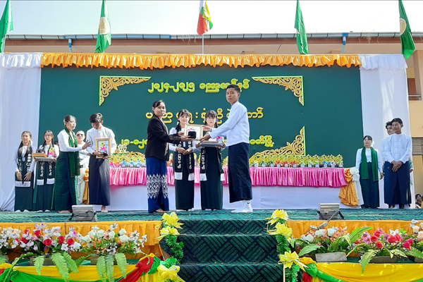 ထို့နောက် ကျောင်းအုပ်ဆရာမကြီး ဒေါ်သန်းသန်းမြင့်က ကျေးဇူးတင်စကား ပြန်လည်ပြောကြားပေးပြီး နိုင်ငံတော်အဆင့်၊ ပြည်နယ်အဆင့်၊ မြို့နယ်အဆင့်တို့၌ ကာယ၊ ဉာဏပိုင်းတွင် ထူးချွန်သော ကျောင်းသား၊ ကျောင်းသူများအား မြို့နယ်ပညာရေးမှူး ဦးမိုးကျော်၊ ဌာနဆိုင်ရာတာဝန်ရှိသူများ၊ အငြိမ်းစား ကျောင်းအုပ်ကြီးများ၊ ကျောင်းအကျိုးတော်ဆောင်များနှင့် ဖိတ်ကြားထားသော ဧည့်သည်တော်များက ဆုများချီးမြှင့်ပေးပြီး အခမ်းအနား ဒုတိယပိုင်းအနေဖြင့် စုံညီပွဲတော်ကို ဆက်လက်ကျင်းပခဲ့ရာ ကျောင်းသား၊ ကျောင်းသူလေးများက အကပဒေသာများဖြင့် ဖျော်ဖြေတင်ဆက်သွားမည်ဖြစ်ကြောင်း သိရသည်။
