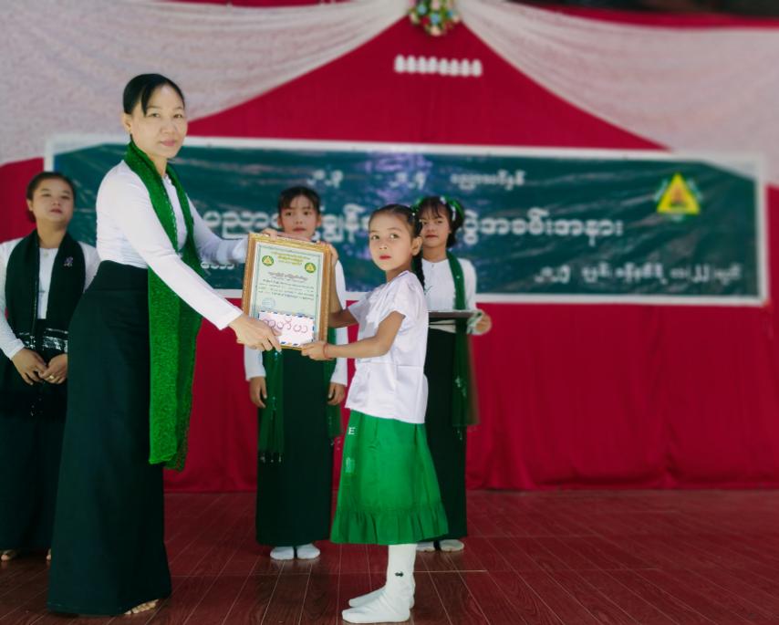 ကရင်ပြည်နယ်၊ ပိုင်ကျုံမြို့၊ မိုးနိုင်ကျေးရွာအုပ်စုရှိ အ.မ.က ထီးဖိုးမယ်ဘောကျောင်း၌ ၂၀၂၃-၂၀၂၄ ပညာသင်နှစ်အတွင်း စွမ်းဆောင်ရည်အကောင်းဆုံးရရှိသည့် ကျောင်းသား/ သူများအား ပညာရည်ချွန်ဆုချီးမြှင့်ပွဲ အခမ်းအနားကို ယမန်နေ့က ကျင်းပပြုလုပ်ခဲ့သည်။