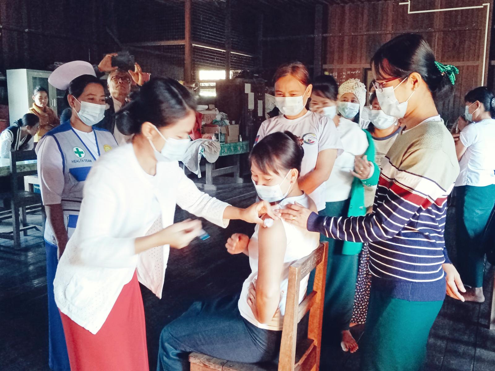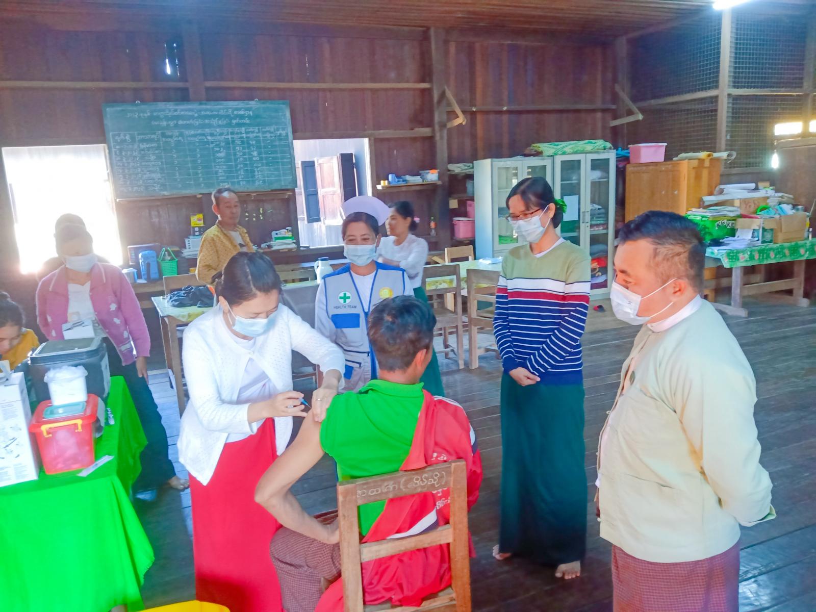ကာကွယ်ဆေးထိုးနှံရာတွင် လိပ်သိုမြို့ တိုက်နယ်ကျန်းမာရေးဌာနမှ ကျန်းမာရေးဆရာမ မိမိုးမိုးခိုင်နှင့် ကျန်းမာရေးဝန်ထမ်းများက (Pfizer) အမျိုးအစား ကိုဗစ်-၁၉ ရောဂါကာကွယ်ဆေးကို ဆရာ/ဆရာမများ၊ ကျောင်းသား/ကျောင်းသူများနှင့် နိုင်ငံ့ဝန်ထမ်းများအား ကာကွယ်ဆေးထိုးနှံရေး လမ်းညွှန်ချက်များနှင့်အညီ ထပ်ဆောင်းထိုးနှံပေးခဲ့ကြောင်း သိရသည်။
