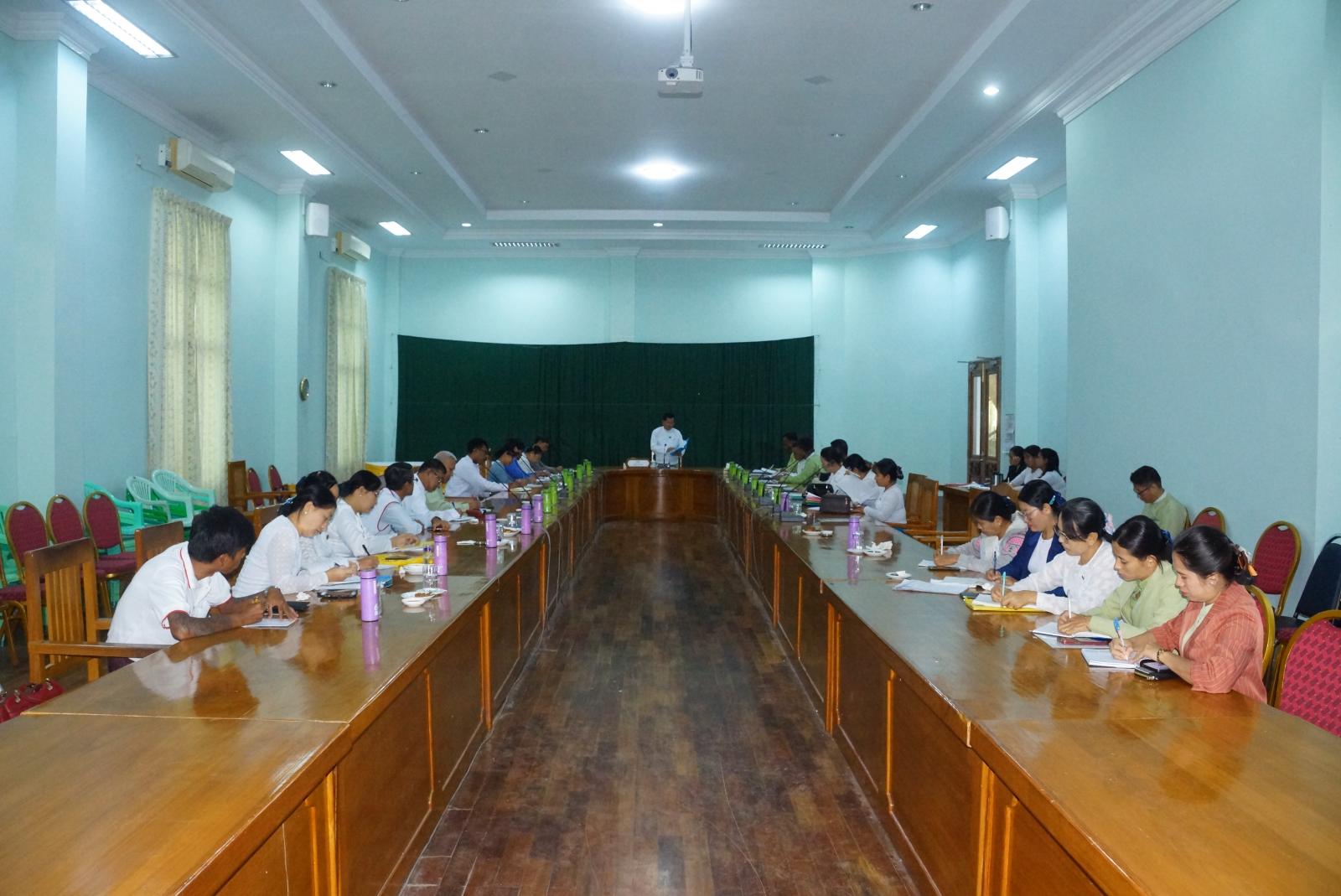 ယင်းနောက် နေပြည်တော် စာကြည့်တိုက်များဖွံ့ဖြိုးတိုးတက်ရေး ပူးပေါင်းဆောင်ရွက်မှုကော်မတီအတွင်းရေးမှူး ဒေါ်သင်းသင်းဇင်နှင့် ကော်မတီဝင်များက နေပြည်တော်စာကြည့်တိုက်များဖွံ့ဖြိုးတိုးတက်ရေးနှင့်ပတ်သက်၍ ဆောင်ရွက်ထားရှိမှု အခြေအနေများကို ရှင်းလင်းတင်ပြသည်။