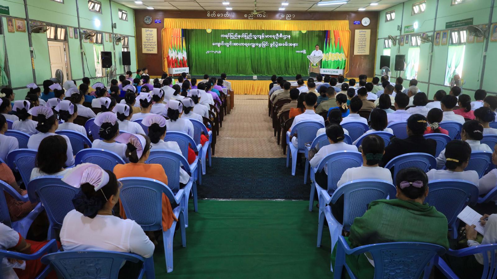 ဆက်လက်၍ ၂၀၂၄-၂၀၂၅ ဘဏ္ဍာရေးနှစ် ကျောင်းတွင်းအာဟာရကျွေးမွေးခြင်း ဖွင့်ပွဲအခမ်းအနားကို နံနက် ၁၀ နာရီက ဘားအံမြို့၊ အမှတ် (၄) အခြေခံပညာအထက်တန်းကျောင်း မြတ်ပညာခန်းမ၌ ကျင်းပရာ ပြည်နယ်ဝန်ကြီးချုပ်က ပြည်နယ်အတွင်း အခြေခံပညာကျောင်းပေါင်း ၁၁၉၅ ကျောင်းမှ KG ကျောင်းသား၊ ကျောင်းသူ ၂၄၈၇၄ ဦးအတွက် ကျောင်းတွင်း အာဟာရကျွေးမွေးခြင်းကို ဆောင်ရွက်သွားမည်ဖြစ်ပြီး စုစုပေါင်းငွေကျပ် ၁၁၁၉၃၃၀၀ဝိ/-(တစ်ထောင်တစ်ရာ တစ်ဆယ့်ကိုးသိန်းသုံးသောင်းသုံးထောင်ကျပ်)ကို ကျခံသုံးစွဲသွားမည်ဖြစ်ကြောင်း၊ အခြေခံကျပြီး အရေးပါသည့် အာဟာရဖွံ့ဖြိုးရေးလုပ်ငန်းများနှင့် ကျောင်းကျန်းမာရေးလုပ်ငန်းများကို ပိုမိုခိုင်မာ အောင် အစဉ်တစိုက်ပူးပေါင်းဆောင်ရွက်ပေးကြစေလိုကြောင်း ပြောကြားသည်။