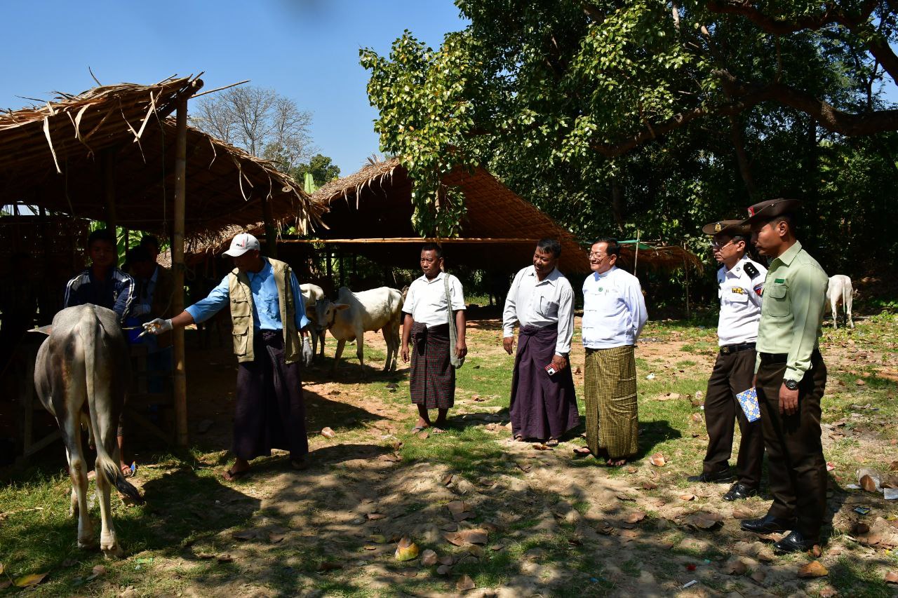 ရှေးဦးစွာနေပြည်တော်ကောင်စီဝင်နှင့် တာဝန်ရှိသူများသည် ဆင်ဆိပ်ကျေးရွာနှင့် သစ်ဆိမ့်ပင်ကျေးရွာတို့တွင် ကျွဲ/ နွား ခွာနာ/လျှာနာရောဂါကာကွယ်ဆေးထိုးနှံမှုအား ကြည့်ရှုစစ်ဆေးရာ နေပြည်တော် မွေးမြူရေးနှင့်ကုသရေးဦးစီးဌာနမှ တိုင်းဦးစီးမှူး ဒေါက်တာဝင်းဦးက လယ်ဝေးမြို့နယ်အတွင်း Food and mouth disease ( FMD) Control Zone ဖြစ်စေရေးအတွက် ကာကွယ်ဆေးများ ထိုးနှံနေမှုအခြေအနေများအား ရှင်းလင်း ပြောကြားသည်။