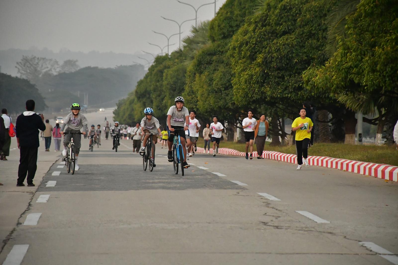 ပြည်ထောင်စုနယ်မြေ၊ နေပြည်တော်ကိုယ်ပိုင်ကျောင်းများအသင်းမှ ဦးစီးကျင်းပသည့် စက်ဘီး-မီနီမာရသွန်ပြိုင်ပွဲကို ယနေ့နံနက် ၆ နာရီတွင် ဥပ္ပါတသန္တိစေတီတော်ရှေ့ ရာဇဌာနီလမ်းမကြီး၌ ကျင်းပသည်။