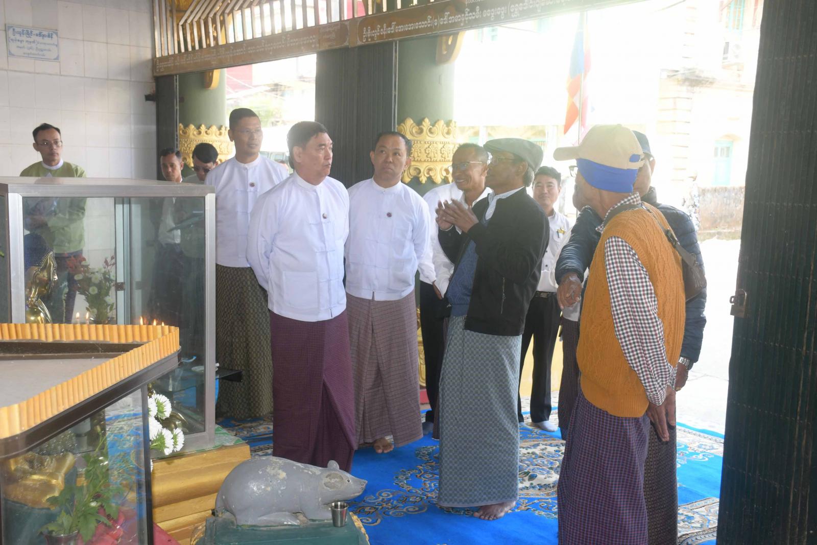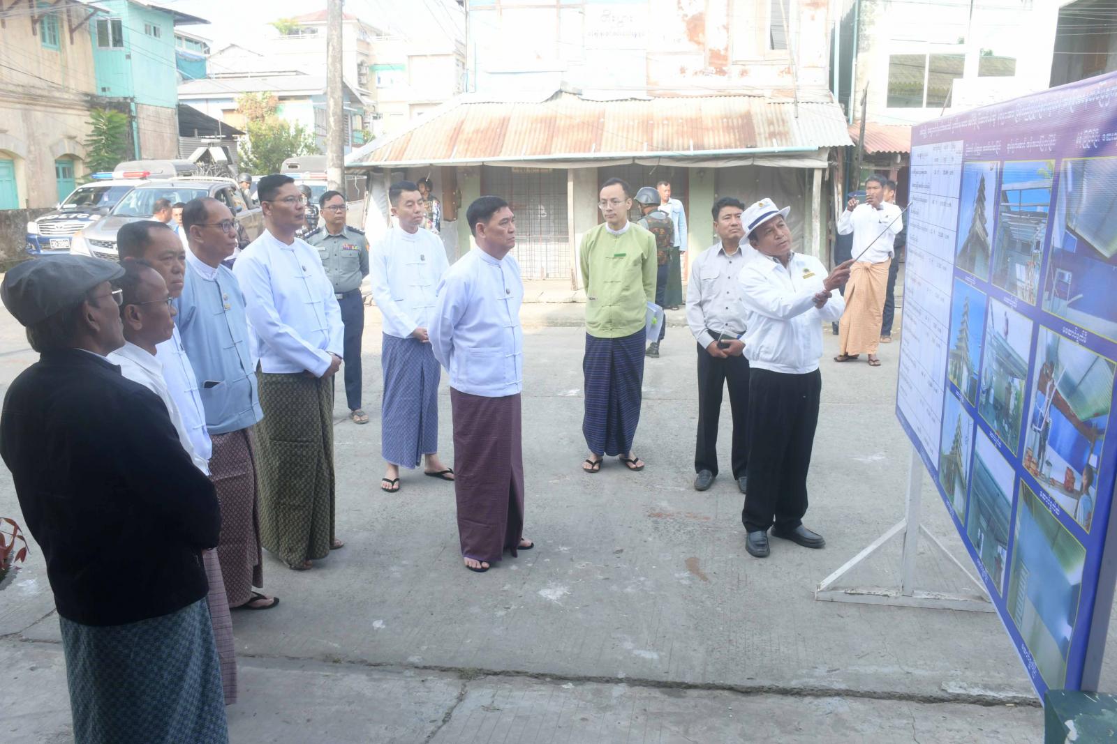 တင်ပြချက်များအပေါ် ပြည်နယ်ဝန်ကြီးချုပ်က လိုအပ်သည်များအား ဆွေးနွေးမှာကြားပြီး စေတီတော်နှင့်သာသနိကအဆောက်အဦများ ပြုပြင်ပြီးစီးမှုအခြေအနေများကို လှည့်လည်ကြည့်ရှုရာ တာဝန်ရှိသူများကလိုက်လံရှင်းလင်းပြသကြသည်။