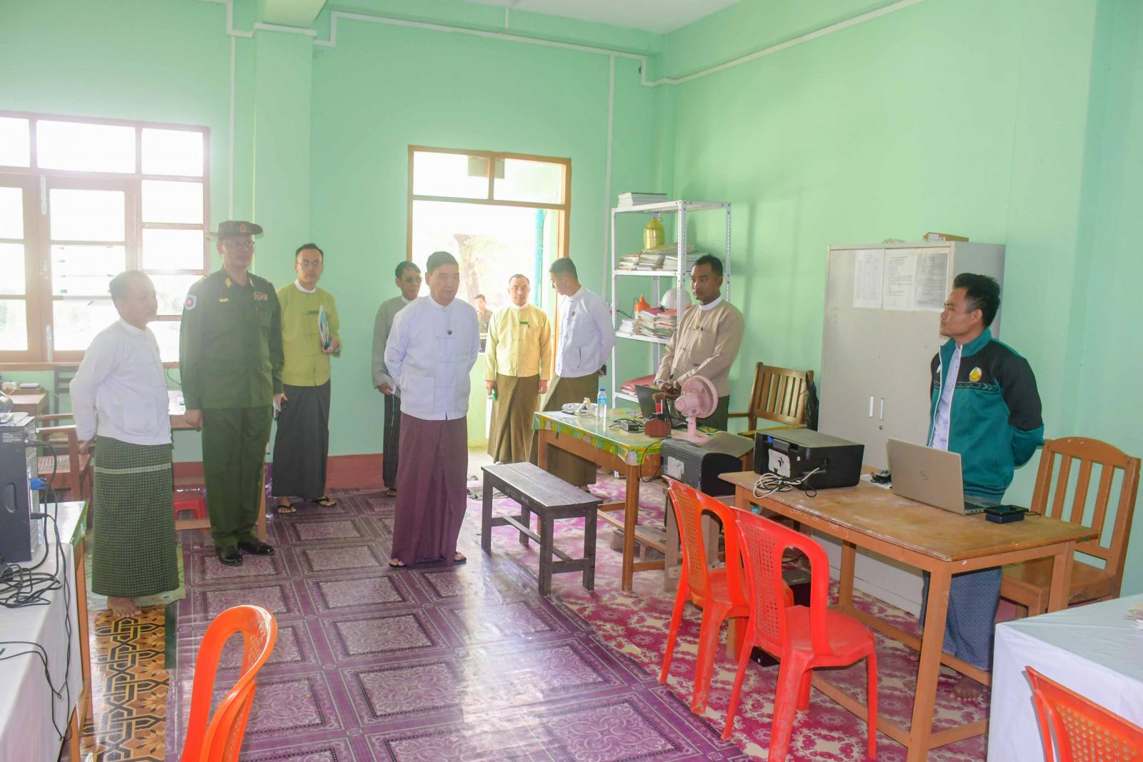 ဆက်လက်၍ ပြည်နယ်ပညာရေးမှူးက ဝန်ထမ်းများရုံးလုပ်ငန်း ဆောင်ရွက်နေမှုနှင့် တက္ကသိုလ်ဝင်စာမေးပွဲ အောင်မြင်စွာကျင်းပနိုင်ရေးအတွက် ဆောင်ရွက်ထားရှိမှုအခြေအနေများကို ရှင်းလင်းတင်ပြသည်။ ယင်းနောက် ပြည်နယ်ဝန်ကြီးချုပ်နှင့်အဖွဲ့သည် ရုံးအတွင်းဝန်ထမ်းများက မိမိတို့၏ရုံးလုပ်ငန်းများအား လုပ်ဆောင်နေမှုကို လှည့်လည်ကြည့်ရှုပြီး ရုံးသန့်ရှင်းသာယာလှပရေး အတွက် ဆောင်ရွက် ထားရှိမှုတို့ကို လှည့်လည်ကြည့်ရှုခဲ့သည်။