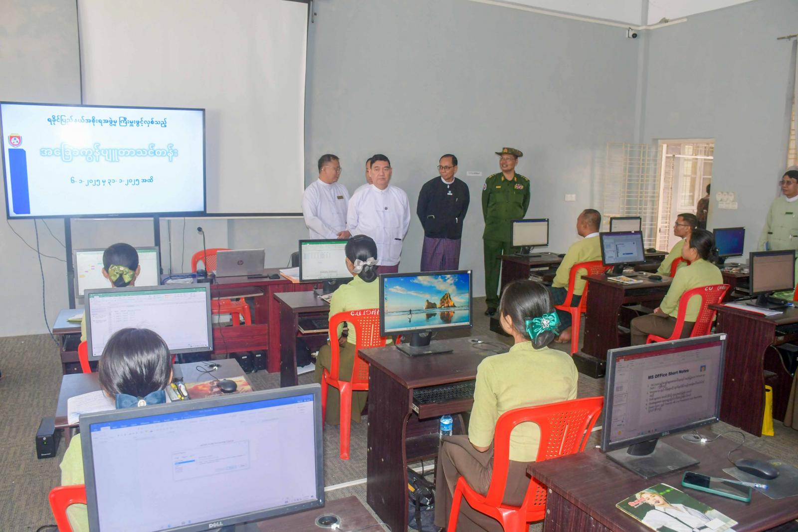 ထို့နောက် ပြည်နယ်ဝန်ကြီးချုပ်နှင့်အဖွဲ့သည် ကွန်ပျူတာတက္ကသိုလ်(စစ်တွေ)၌ ရခိုင်ပြည်နယ်အစိုးရအဖွဲ့၏ ကြီးကြပ်မှုဖြင့် ပြည်နယ်အထွေထွေအုပ်ချုပ်ရေးဦးစီးဌာနမှ ဝန်ထမ်းများအား အခြေခံ ကွန်ပျူတာသင်တန်း ဖွင့်လှစ်သင်ကြားနေမှုကို သွားရောက်ကြည့်ရှုအားပေးကြသည်။