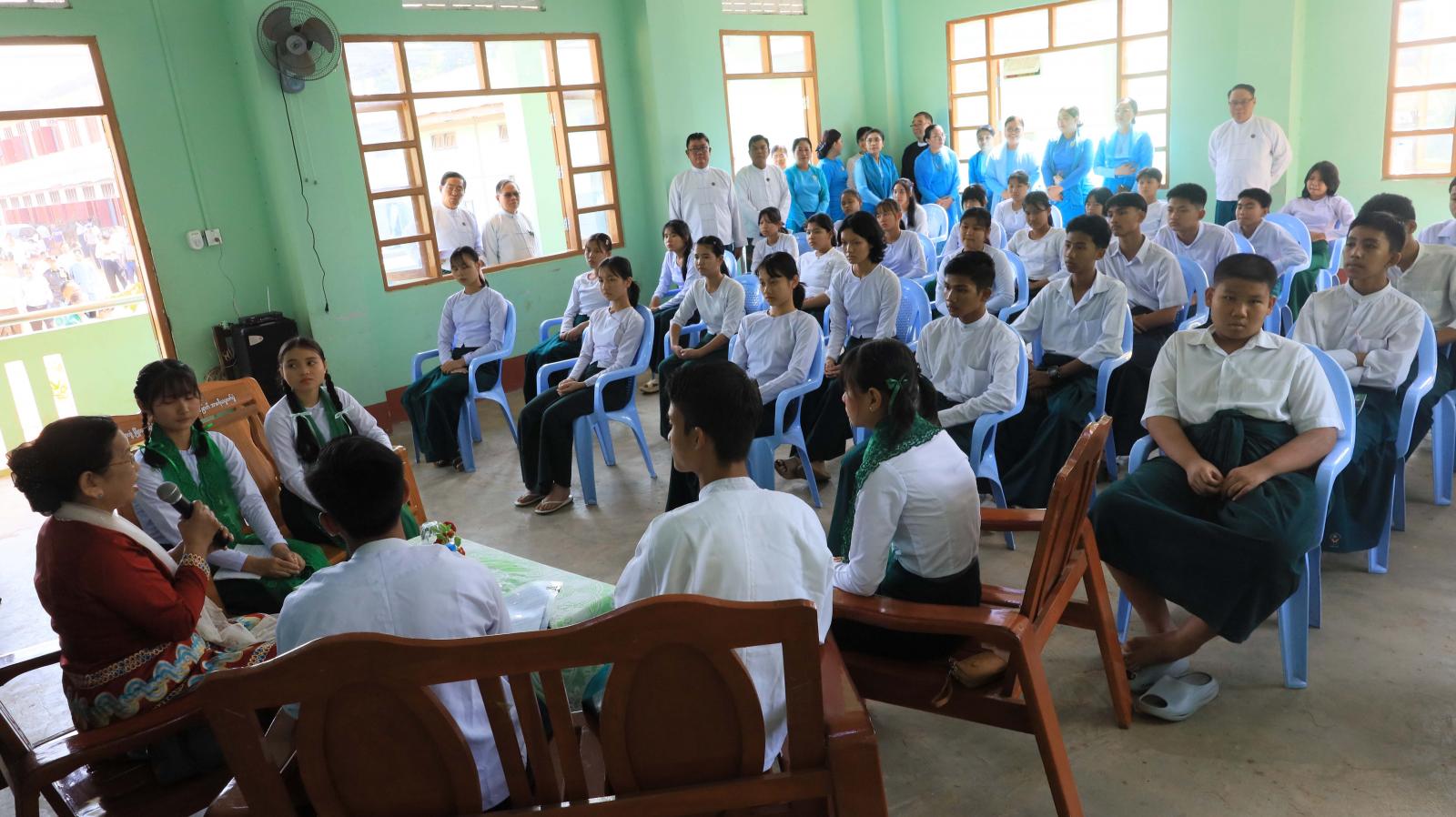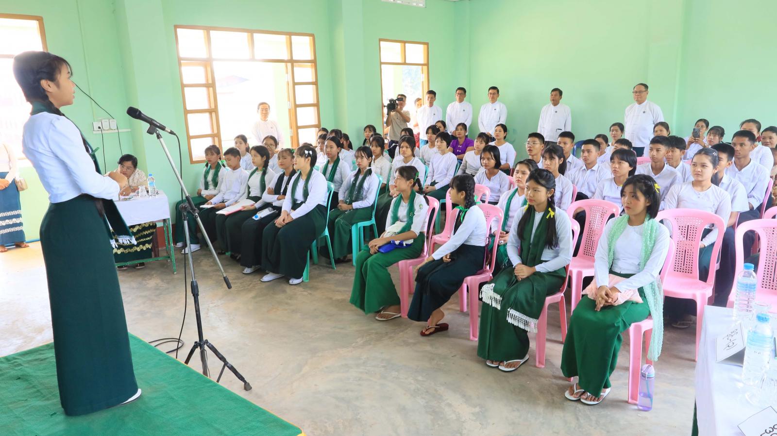 ထို့နောက် သုတ၊ ရသ စာအုပ်ပေါင်း ၁၀၀၀ ခန့်ရှိ အမှတ် (၄) အခြေခံပညာအထက်တန်းကျောင်း စာကြည့်တိုက်တွင် ကျောင်းသားလူငယ်များ စာပေဖတ်ရှုလေ့လာနေမှုတို့ကို ကြည့်ရှုအားပေး၍ ကျောင်းစာကြည့်တိုက်အတွက် ငွေကျပ် (၁၀) သိန်းကို ချီးမြှင့်ပေးအပ်ခဲ့ကြောင်း သိရသည်။