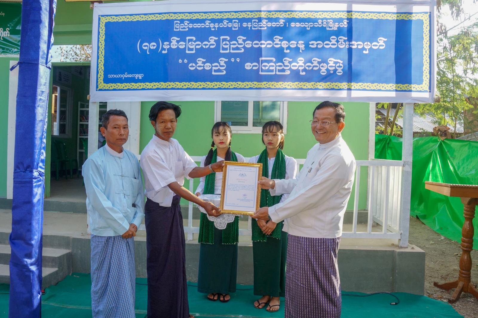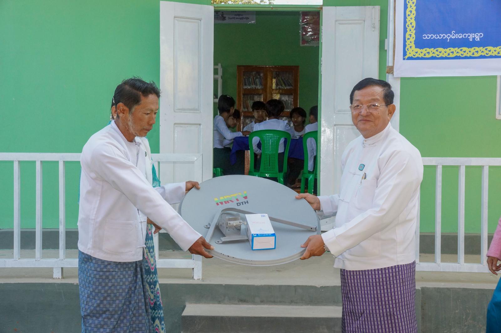 ဆက်လက်၍ နေပြည်တော် စာကြည့်တိုက်များ ဖွံ့ဖြိုးတိုးတက်ရေး ပူးပေါင်းဆောင်ရွက်မှုကော်မတီ ဒုတိယဥက္ကဋ္ဌ၊ နေပြည်တော်ကောင်စီဝင် ဦးမြင့်စိုး၊ နေပြည်တော်ကောင်စီဝင် ဦးဟန်သူနှင့် တာဝန်ရှိသူများက စာကြည့်တိုက်များအတွက်အလှူငွေများ၊ စာအုပ်စာစောင်များ၊ MRTV DTH စလောင်းနှင့် MRTV DVB- T2 Set Top Box တစ်စုံကိုလည်းကောင်း၊ အလှူရှင်များအား ဂုဏ်ပြုမှတ်တမ်းလွှာများကိုလည်းကောင်း ပေးအပ်ကာ စာကြည့်တိုက်အတွင်း ကျောင်းသား၊ ကျောင်းသူ၊ လူငယ်လူရွယ်များ စာပေဖတ်ရှုလေ့လာနေမှုနှင့် စာအုပ်၊ စာစောင်များ ထားရှိမှုအခြေအနေများကို ကြည့်ရှုအားပေးသည်။