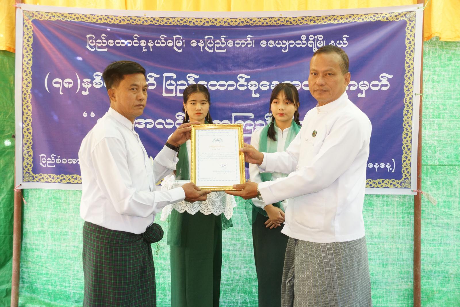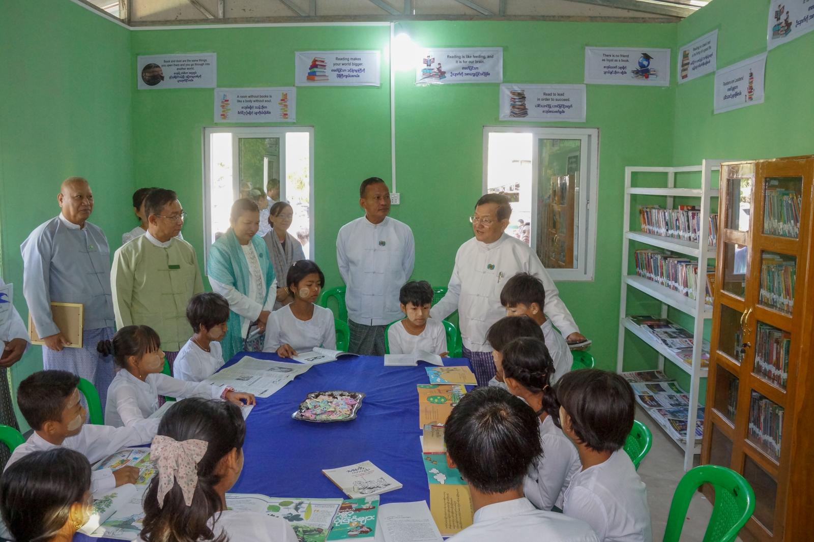 ထို့နောက် နေပြည်တော် စာကြည့်တိုက်များဖွံ့ဖြိုးတိုးတက်ရေး ပူးပေါင်းဆောင်ရွက်မှုကော်မတီ ဒုတိယဥက္ကဋ္ဌ၊ နေပြည်တော်ကောင်စီဝင် ဦးမြင့်စိုးက နိုင်ငံတစ်နိုင်ငံကို ဖွံ့ဖြိုးတိုးတက်အောင် ဆောင်ရွက်ရာတွင် လူ့အရင်းအမြစ်များကိုအခြေခံ၍ စနစ်တကျပြုစုပျိုးထောင်ရမည်ဖြစ်ပြီး တာဝန်ရှိသူအားလုံးက လူငယ်၊ လူရွယ်များအား အဓိကပြုစုပျိုးထောင်ရေးလုပ်ငန်းများကို ဝိုင်းဝန်းလုပ်ဆောင်ပေးကြရမည်ဖြစ်ပါကြောင်း၊ လူငယ်များအပါအဝင် ပြည်သူများ စာဖတ်ကြစေရန်၊ စာပေလေ့လာဖတ်ရှုနိုင်သည့် ပတ်ဝန်းကျင်များ ဖန်တီးပေးရန်၊ မိမိတို့နိုင်ငံ၏ နေထိုင်မှုပုံစံအနေဖြင့် ကျေးလက်ဒေသတွင် နေထိုင်သူဦးရေမှာ နိုင်ငံ့လူဦးရေ၏ ၇၀ ရာခိုင်နှုန်းခန့်ရှိသည့်အတွက် ယခုလို ကျေးရွာများအရောက် စာကြည့်တိုက်များ အသစ်ဆောက်လုပ်ခြင်း၊ ရှိနှင့်ပြီးသား ကျေးရွာစာကြည့်တိုက်များအား ပြန်လည်ပြင်ဆင်ပေးခြင်း၊ စာအုပ်စာစောင်များ ဖြည့်ဆည်းပေးခြင်းလုပ်ငန်းများကို ဆောင်ရွက်ပေးနေခြင်းဖြစ်ပါကြောင်း၊ “နေပြည်တော် စာကြည့်တိုက်များ ဖွံ့ဖြိုးတိုးတက်ရေး ပူးပေါင်းဆောင်ရွက်မှုကော်မတီ” အနေဖြင့်လည်း ဗဟိုကချမှတ်ထားသည့် လုပ်ငန်းစဉ် (၄)ရပ်ကို အကောင်အထည်ဖော် ဆောင်ရွက်လျက်ရှိပါကြောင်း၊ စာပေဖတ်ရှုလေ့လာခြင်းမှ အသိပညာဗဟုသုတများစွာရရှိနိုင်သဖြင့် ကျေးလက်နေပြည်သူများအနေဖြင့်လည်း စာအုပ်စာပေကို မြတ်နိုးတန်ဖိုးထားဖတ်ရှုကြရန်လိုအပ်ပါကြောင်း၊ စာအုပ်စာပေလေ့လာဖတ်ရှုရာတွင် ဖတ်ရှုရုံသက်သက်မဟုတ်ဘဲ ဖတ်သမျှကိုမှတ်သားခြင်း၊ မှတ်သားမိသမျှကိုလည်း ပြန်လည်မျှဝေဆွေးနွေးခြင်းတို့ကို ဆောင်ရွက်ကြရမည်ဖြစ်ပါကြောင်း၊ သို့မှသာ အမှား/အမှန်ကို ဝေဖန်သုံးသပ်နိုင်ကာ အသိပညာဗဟုတကြွယ်ဝပြီး နောင်တစ်ချိန်တွင် တိုင်းပြည်က အားကိုးအားထားပြုရမည့် နိုင်ငံ့သားကောင်းများအဖြစ် ပေါ်ထွန်းလာမည်ဖြစ်ပါကြောင်း ပြောကြားခဲ့သည်။