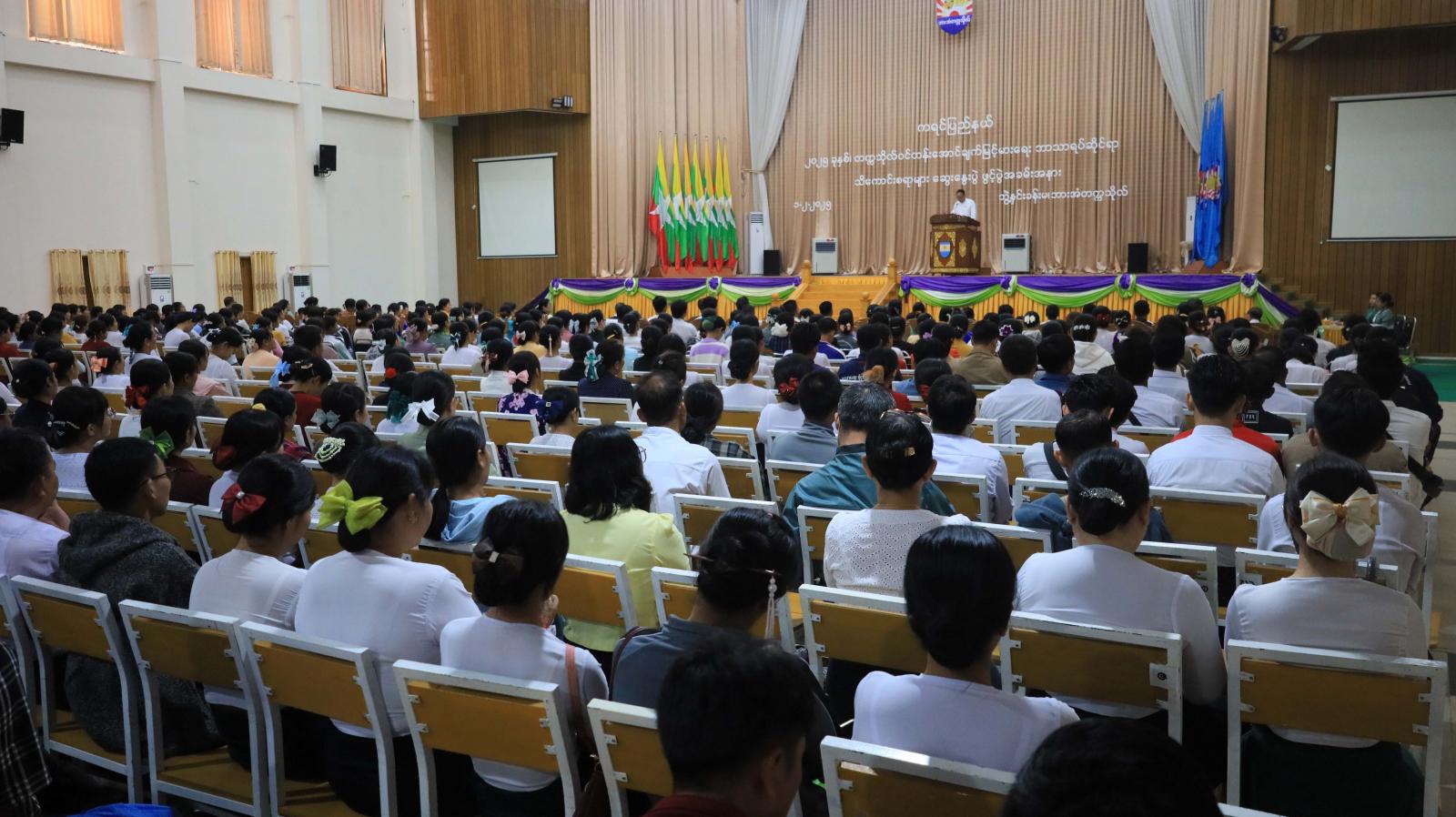 ဦးစွာ ပြည်နယ်ဝန်ကြီးချုပ်ဦးစောမြင့်ဦးက အခြေခံပညာကျောင်းသားလူငယ်များ အဆင့်မြင့်ပညာ၊ သက်မွေးပညာရပ်များ တစ်ဆင့်မြင့်တက်ရောက်သင်ကြားနိုင်ရေး ကြိုးစားအားထုတ်ရမည့် တက္ကသိုလ်ဝင်တန်းစာမေးပွဲအတွက် သိကောင်းစရာများကို တက္ကသိုလ်များမှ လာရောက် ဆွေးနွေးပေးကြသည့်အတွက် ကျေးဇူးတင်ဝမ်းမြောက်ပါကြောင်း၊ မိမိတို့တပည့်များအတွက် အချိန်ပေးပြီးဆွေးနွေးပွဲသို့ လာရောက်ပေးကြသည့် ပြည်နယ်အတွင်းရှိ ဆရာ၊ ဆရာမများအနေဖြင့်လည်း တက္ကသိုလ်ဝင်တန်းအောင်ချက်မြင့်မားရေးအတွက် ကြိုးစားသင်ကြားပေးကြရန် တိုက်တွန်းလိုကြောင်း ပြောကြားသည်။