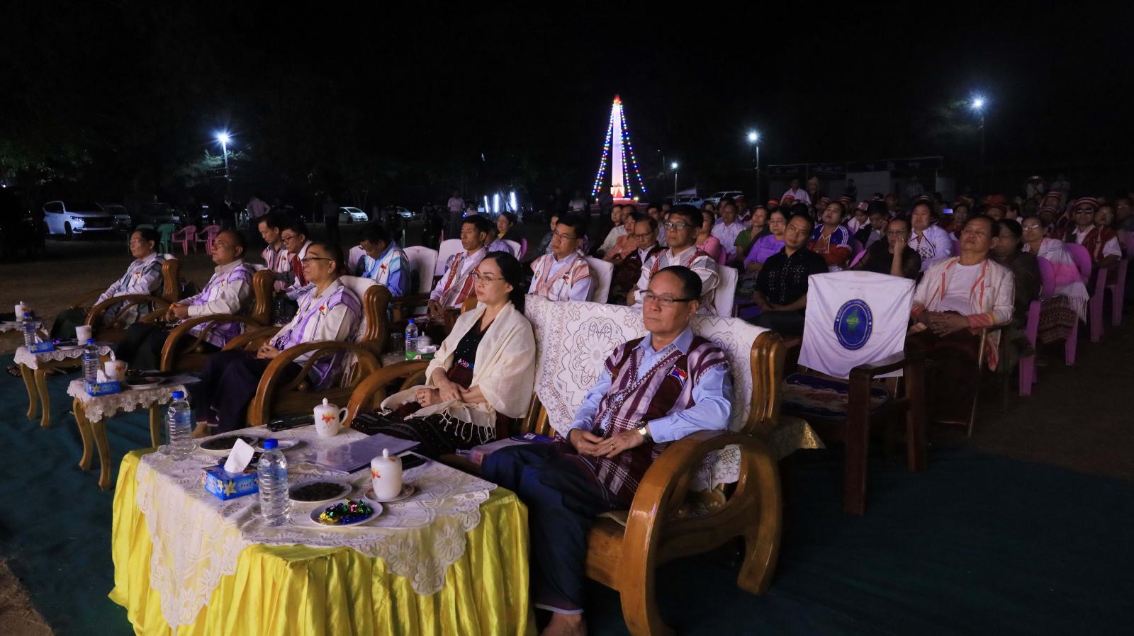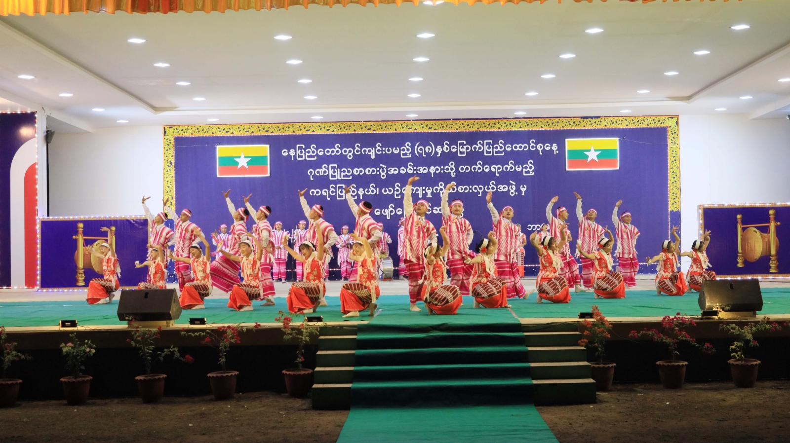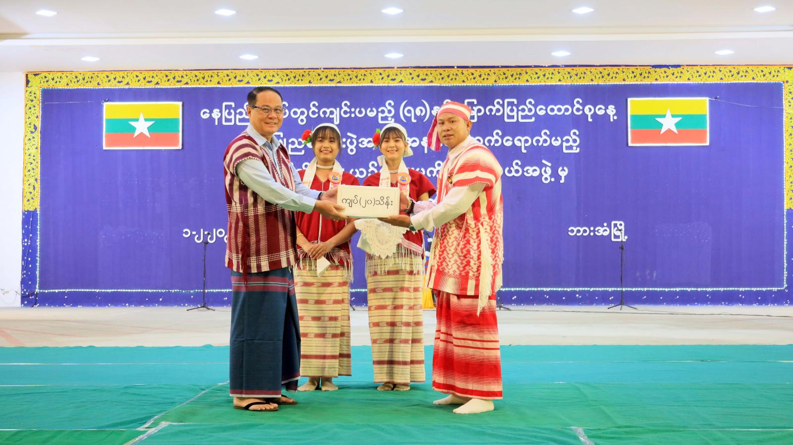 ထို့နောက် ပြည်နယ်ဝန်ကြီးချုပ်က ပြည်ထောင်စုနေ့ဂုဏ်ပြုညစာစားပွဲသို့ တက်ရောက်မည့် ကရင်ပြည်နယ် ယဉ်ကျေးမှုကိုယ်စားလှယ်အဖွဲ့အား ငွေကျပ် သိန်း(၂၀)ကို ချီးမြှင့်ပေးအပ်ပြီး ပြည်ထောင်စုနေ့ ဂုဏ်ပြုညစာစားပွဲသို့ တက်ရောက်မည့် ကရင်ပြည်နယ် ယဉ်ကျေးမှုကိုယ်စားလှယ်အဖွဲ့နှင့် ကရင်အနုပညာရှင်အစည်းအရုံးတို့မှ တေးသရုပ်ဖော်အကများ၊ တေးသီချင်းများ၊ ပြည်ထောင်စုနေ့ညစာစားပွဲ တွင်တင်ဆက်ကပြမည့် ကရင်ရိုးရာဒုံးအကနှင့် တိုင်းရင်းသားတူရိယာများဖြင့် တီးခတ်သီဆိုကပြဖျော်ဖြေကြရာ ပြည်နယ်ဝန်ကြီးချုပ်၊ ပြည်နယ်တရားလွှတ်တော် တရားသူကြီးချုပ်ဦးညွန့်လင်း၊ ပြည်နယ်အစိုးရအဖွဲ့ဝင်များ၊ ပြည်နယ်မိခင်နှင့်ကလေး စောင့်ရှောက်မှုကြီးကြပ်ရေးအဖွဲ့နှင့် ပြည်နယ်အမျိုးသမီးရေးရာအဖွဲ့ နာယကနှင့်အဖွဲ့ဝင်များ၊ ဌာနဆိုင်ရာများ၊ ဒေသခံတိုင်းရင်းသားပြည်သူများ တက်ရောက်ကြည့်ရှုအားပေးခဲ့ကြကာ ဂုဏ်ပြုဆုငွေများ အသီးသီး ပေးအပ်ချီးမြှင့်ကြကာ စုပေါင်းမှတ်တမ်းဓါတ်ပုံများ ရိုက်ကူးခဲ့ကြကြောင်း သိရသည်။