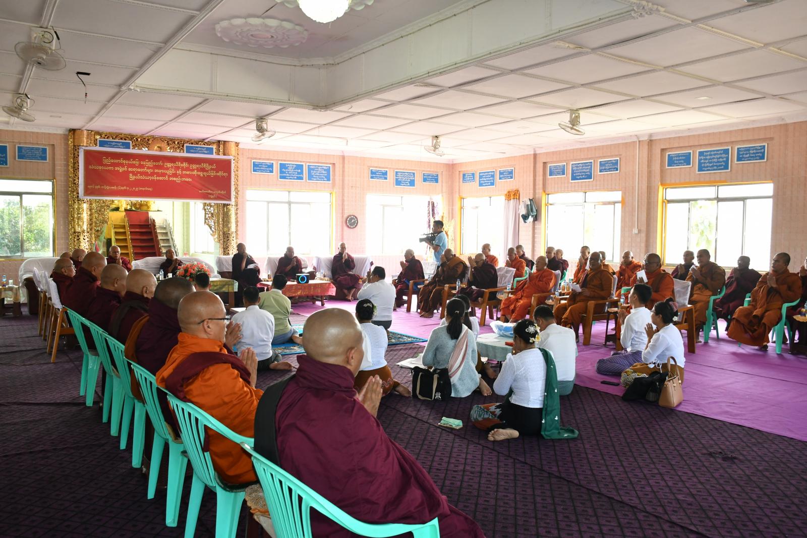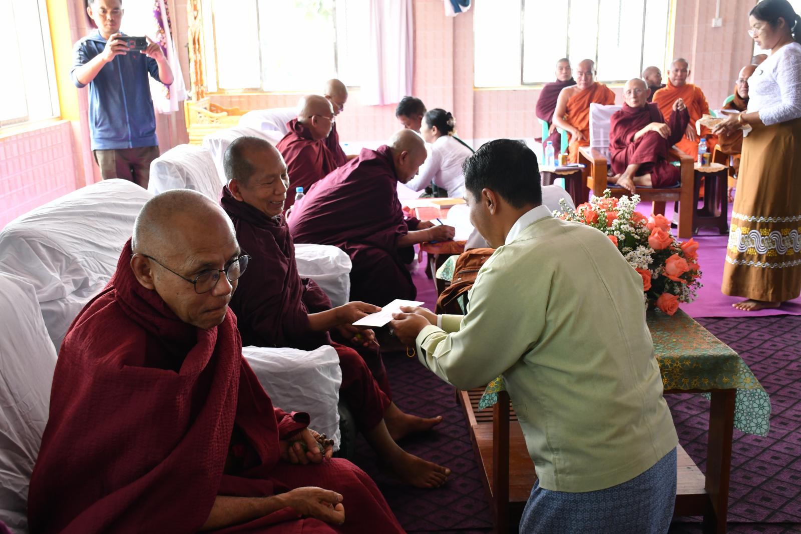 ပြည်ထောင်စုနယ်မြေ၊ နေပြည်တော်၊ ဥတ္တရသီရိမြို့နယ် သံဃနာယကအဖွဲ့ဝင် ဆရာတော်များ အနားယူခြင်းနှင့် အစားထိုးရွေးချယ်ခြင်းဆိုင်ရာ မြို့နယ်သံဃာ့ဝန်ဆောင် အစည်းအဝေးကို ယမန်နေ့ မွန်းလွဲပိုင်းက မင်းကုန်းကျေးရွာအုပ်စု၊ ကျွဲရှင်းကျေးရွာ၊ မဏိဇောတိကကျွဲရှင်း ကျောင်းတိုက်တွင် ကျင်းပရာ ဦးဆောင်ကွပ်ကဲရေးအဖွဲ့ဖြစ်သော နိုင်ငံတော်သံဃမဟာနာယက အဖွဲ့ဝင် ဆရာတော်ကြီးနှင့် နိုင်ငံတော်ဗဟိုသံဃာ့ဝန်ဆောင် ဆရာတော်ကြီးများ၊ ကြီးကြပ်ရေးအဖွဲ့ ဆရာတော်ကြီးများ၊ မြို့နယ်သံဃနာယကအဖွဲ့ဝင် ဆရာတော်များ၊ မြို့နယ်သံဃာ့ဝန်ဆောင် ဆရာတော်များ၊ နေပြည်တော် သာသနာရေးမှူးရုံးမှ ဒုတိယညွှန်ကြားရေးမှူး ဦးသက်နိုင်ဝင်း၊ ခရိုင်သာသနာရေးမှူး ဦးနိုင်လင်း၊ မြို့နယ်စီမံအုပ်ချုပ်ရေးအဖွဲ့ဥက္ကဋ္ဌ ဦးရဲမြတ်သိန်း၊ အဖွဲ့ဝင်(၂) ဦးမျိုးချစ်၊ မြို့နယ်သာသနာရေးမှူး ဒေါ်သွယ်သွယ်ခိုင်နှင့် တာဝန်ရှိသူများ၊ အလှူရှင်များ တက်ရောက်ခဲ့ကြသည်။