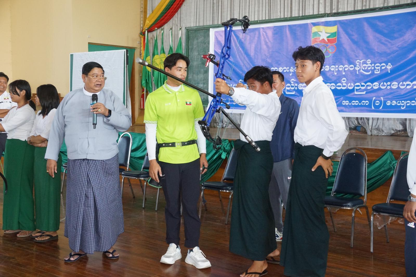 ယင်းနောက် မြန်မာ့လက်ရွေးစင် မြှားပစ်အားကစားသမားနှစ်ဦးမှ မြှားပစ်အားကစားနည်းများအား လက်တွေ့သရုပ်ပြခဲ့ရာ ကျောင်းသား၊ ကျောင်းသူများက ကြည့်ရှုအားပေးခဲ့ကြောင်း သိရသည်။