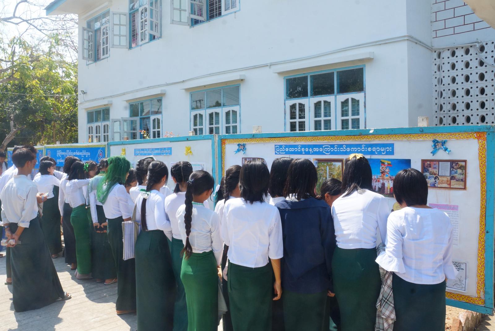 ယင်းနောက် ဒက္ခိဏခရိုင်၊ ပြန်ကြားရေးနှင့်ပြည်သူ့ဆက်ဆံရေးဦးစီးဌာနမှ ခင်းကျင်းပြသထားသည့် ပြည်ထောင်စုနေ့အထိမ်းအမှတ် နံရံကပ်စာစောင်များ၊ လူငယ်ရေးရာ ဗလငါးတန်ဖွံ့ဖြိုးရေး နံရံကပ်စာစောင်များနှင့် စာအုပ်စာစောင်ကို ကျောင်းသား၊ ကျောင်းသူများက စိတ်ဝင်တစား ကြည့်ရှုလေ့လာခဲ့ကြောင်း သိရသည်။