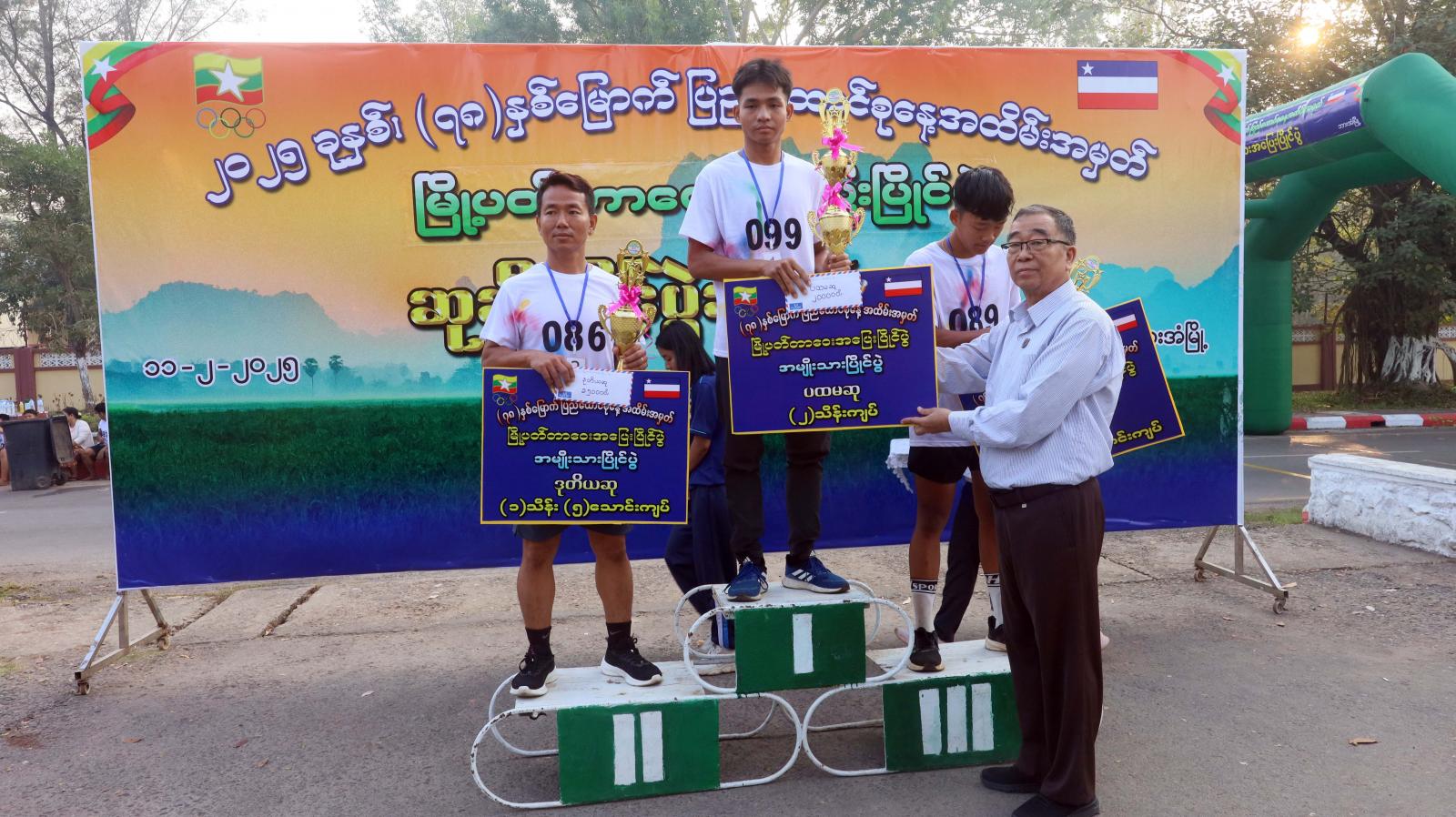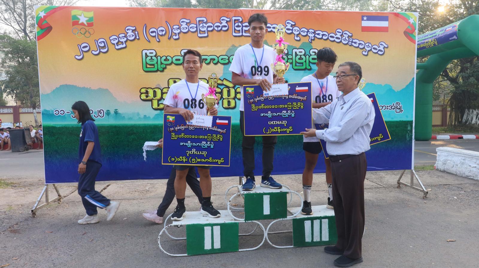 ပြိုင်ပွဲအပြီးတွင် ဆုချီးမြှင့်ပွဲအခမ်းအနားကို ဆက်လက်ကျင်းပရာ ပြည်နယ်မိခင်နှင့်ကလေးစောင့်ရှောက်မှု ကြီးကြပ်ရေးအဖွဲ့နှင့် ပြည်နယ်အမျိုးသမီးရေးရာအဖွဲ့ဝင်များက အမျိုးသမီပြိုင်ပွဲတွင် နှစ်သိမ့်ဆု ၃၀ မှ ၆ ထိ ရရှိကြသူများ၊ အသက်အကြီးဆုံးပြိုင်ပွဲဝင် (၅၃) နှစ်နှင့် အသက်အငယ်ဆုံးပြိုင်ပွဲဝင် (၁၁) နှစ်တို့အား ဂုဏ်ပြုဆုများကိုလည်းကောင်း၊ ပထမ၊ ဒုတိယ၊ တတိယ၊ စတုတ္ထနှင့်ပဉ္စစမဆုရရှိကြသူများကို ငွေသားဆုနှင့်ဆုဖလားများကိုလည်းကောင်း၊ ပြည်နယ်အစိုးရ အဖွဲ့ဝင်များက အမျိုးသားပြိုင်ပွဲတွင် နှစ်သိမ့်ဆု ၃၀ မှ ၆ ထိ ရရှိကြသူများကိုလည်းကောင်း အသီးသီး ပေးအပ်ချီးမြှင့်ကြပြီး ပြည်နယ်တရားလွှတ်တော်တရားသူကြီးချုပ်ဦးညွန့်လင်းက အသက် အကြီးဆုံး ပြိုင်ပွဲဝင် (၇၈) နှစ်နှင့် အသက်အငယ်ဆုံးပြိုင်ပွဲဝင် (၁၁) နှစ်တို့အား ဂုဏ်ပြုဆုများနှင့် ပထမ၊ ဒုတိယ၊ တတိယ၊ စတုတ္ထနှင့်ပဉ္စစမဆုရရှိကြသူများအား ငွေသားဆုနှင့်ဆုဖလားတို့ကို ပေးအပ်ချီးမြှင့်ခဲ့ကြသည်။