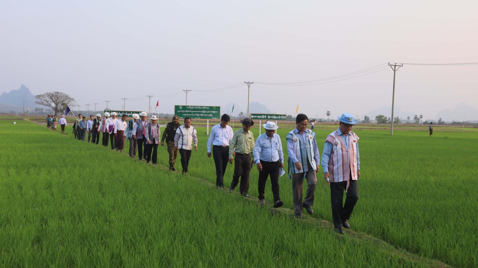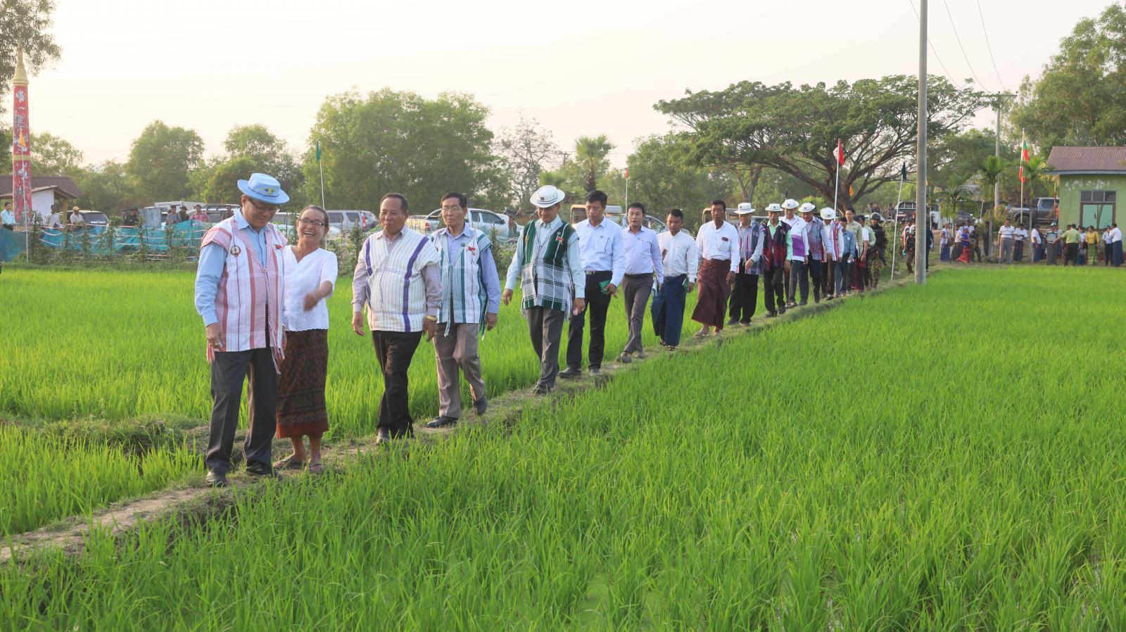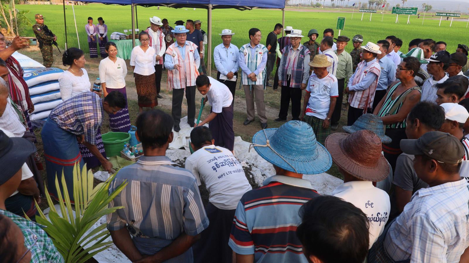 ထို့နောက် ပြည်နယ်ဝန်ကြီးချုပ်၊ ပြည်နယ်တရားလွှတ်တော်တရားသူကြီးချုပ်၊ ပြည်နယ်အစိုးရအဖွဲ့ဝင်များနှင့်တာဝန်ရှိသူများက ကွင်းသရုပ်ပြပွဲသို့တက်ရောက်လာသော နွေစပါးစိုက်တောင်သူများအား သဘာဝမြေဩဇာများနှင့် ယူရီးယားဓာတ်မြေဩဇာများကို အခမဲ့ထောက်ပံ့ပေးအပ်ခဲ့ကြပြီး တောင်သူများနှင့်ရင်းရင်းနှီးနှီးတွေ့ဆုံကာ စိုက်ပျိုးရေးဆိုင်ရာလိုအပ်ချက်များအား မေးမြန်းဆွေးနွေး၍ တာဝန် ရှိသူများအား လိုအပ်သည်များမှာကြားခဲ့ကြောင်း သိရသည်။