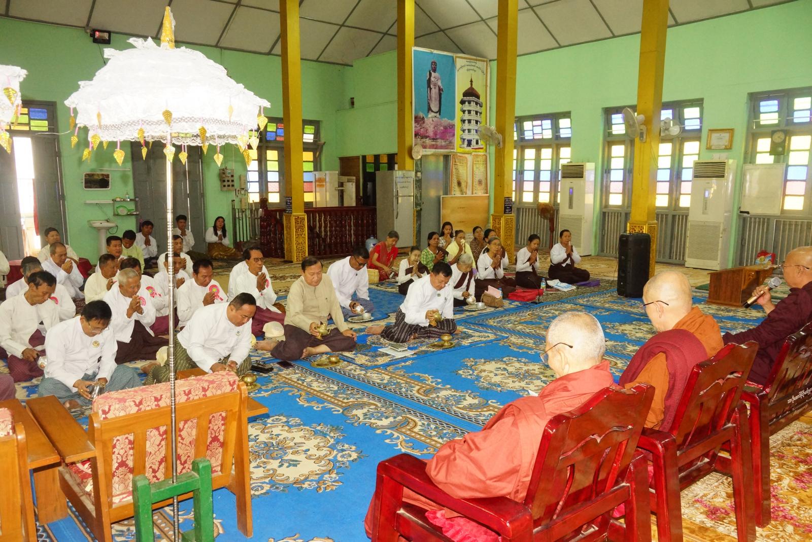 ဦးစွာ နမောတဿသုံးကြိမ်ရွတ်ဆို၍ အခမ်းအနားအားဖွင့်လှစ်ခဲ့ပြီး ကူးတို့ဆိပ် အခြေခံပရိယတ္တိစာသင်တိုက် ပဓာနနာယကဆရာတော် ဘဒ္ဒန္တဝိလာသထံမှ ငါးပါးသီလ ခံယူဆောက်တည်ကြသည်။