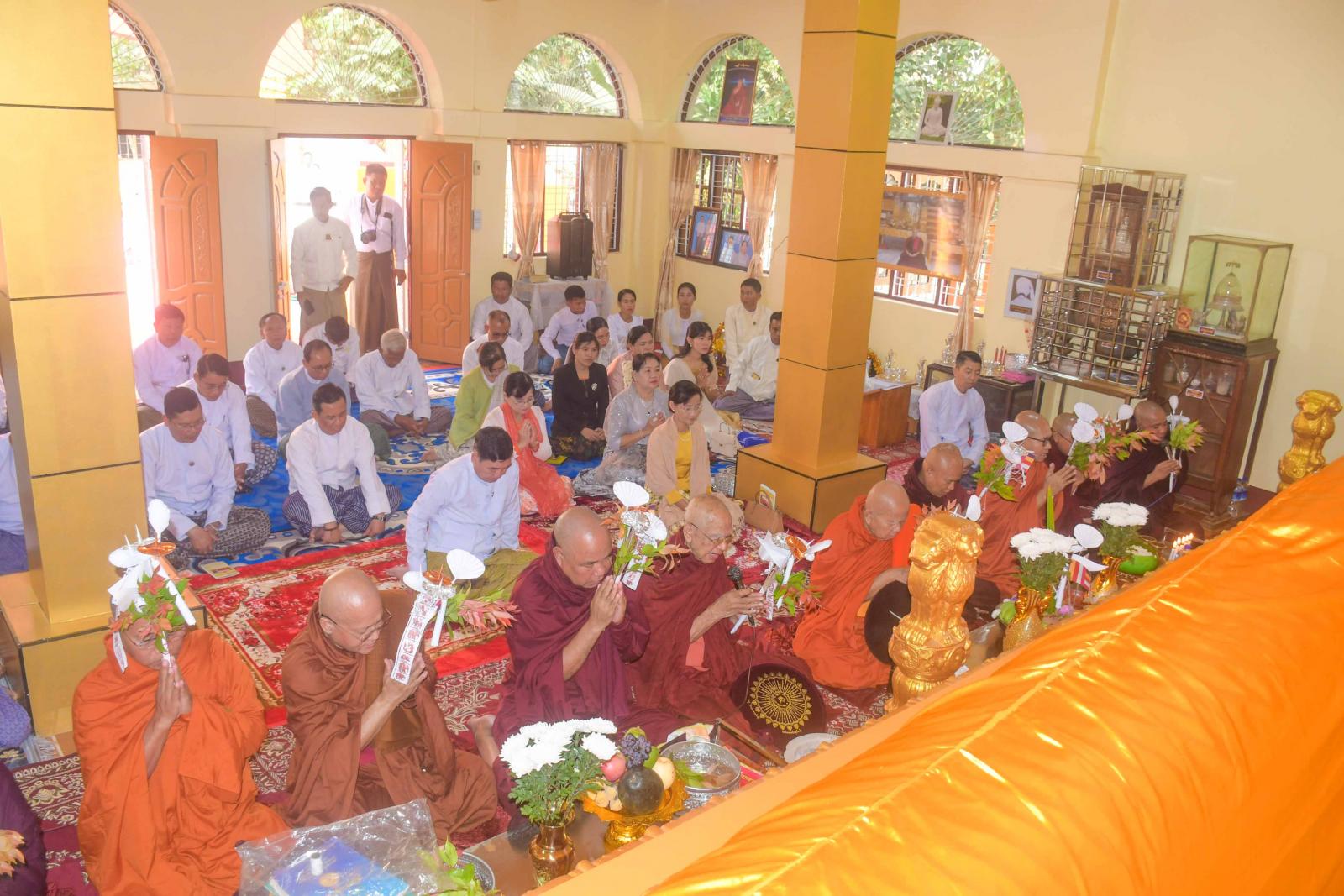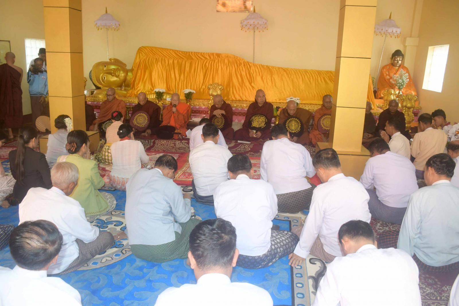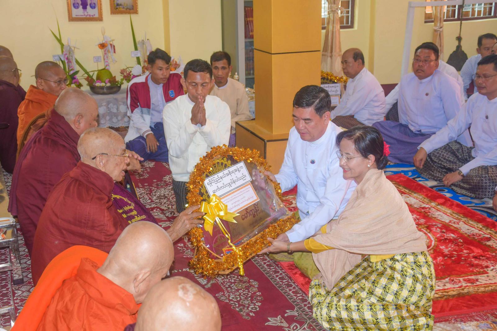 ထို့နောက် ပြည်နယ်ဝန်ကြီးချုပ်နှင့်ဇနီး၊ ပြည်နယ်တရားလွှတ်တော်တရားသူကြီးချုပ်နှင့် တာဝန်ရှိသူများက သံဃာတော်အရှင်သူမြတ်များအား လှူဖွယ်ဝတ္ထုများဆက်ကပ်လှူဒါန်းကြပြီး မြို့နယ်ဩဝါဒါစရိယ၊ စစ်တွေမြို့၊ တပ်ဦးဆုတောင်းပြည့်ကျောင်းတိုက် ဆရာတော် အဂ္ဂမဟာဂန္ထဝါစကပဏ္ဍိတ၊ အဂ္ဂမဟာသဒ္ဓမ္မဇောတိကဓဇ ဘဒ္ဒန္တဉာဏဝံသ မဟာထေရ်မြတ်ထံမှ ပြည်နယ်ဝန်ကြီးချုပ် အမှူးပြုသော ဧည့်ပရိတ်သတ်များက အနုမောဒနာတရား နာယူ၍ လှူဒါန်းမှုအစုစုအတွက် ရေစက်သွန်းချအမျှပေးဝေခဲ့ကြသည်။
