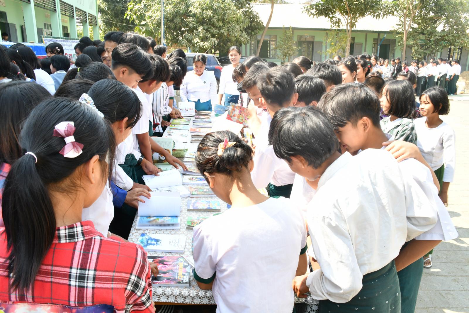 ဦးစွာ မရမ်းခုံကျေးရွာ၊ အခြေခံပညာအထက်တန်းကျောင်းခွဲမှ ကျောင်းအုပ်ဆရာမကြီး ဒေါ်ဝင်းမြတ်ထက်က အဖွင့်အမှာစကားပြောကြားပြီး ဥတ္တရခရိုင် ပြန်ကြားရေးနှင့်ပြည်သူ့ဆက်ဆံရေးဦးစီးဌာန လက်ထောက်ညွှန်ကြားရေးမှူး ဒေါ်ဆွေဆွေဝင်းက ကျောင်းသား၊ ကျောင်းသူများအား ဗလငါးတန်ဖွံ့ဖြိုးတိုးတက်စေရန်၊ အသိပညာဗဟုသုတနှင့် ပြည့်စုံ၍ထူးချွန်ထက်မြက်သည့် လူရည်မွန်လေးများ ဖြစ်ပေါ်လာစေရန်၊ စာအုပ်စာပေများမှရရှိသည့် အသိပညာဗဟုသုတများကို အကျိုးရှိစွာအသုံးချတက်စေရန်နှင့် ပြန်လည်မျှဝေဆွေးနွေးအသုံးချတတ်စေရန်၊ စာပေစွမ်းအားဖြင့် နိုင်ငံ့အကျိုး၊ အများပြည်သူအကျိုးကို တိုးတက်အောင် ဆောင်ရွက်နိုင်စေရန် အသိပညာပေးဟောပြောသည်။