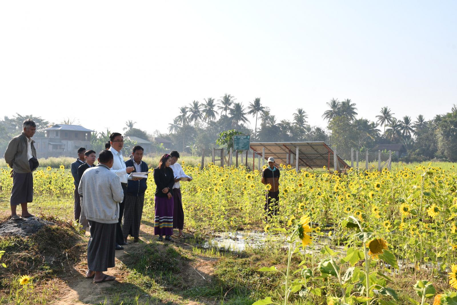 နေပြည်တော်ကောင်စီဝင် ဦးဇေယျာလင်းသည် ဥတ္တရခရိုင် စီမံအုပ်ချုပ်ရေးဥက္ကဋ္ဌ ဦးမြတ်အောင်ဌေး၊ မြို့နယ်စီမံအုပ်ချုပ်ရေးအဖွဲ့ဥက္ကဋ္ဌ ဦးရဲမြတ်သိန်းနှင့်အဖွဲ့ဝင်များ၊ မြို့နယ်အဆင့်ဌာနဆိုင်ရာ တာဝန်ရှိသူများနှင့်အတူ ဥတ္တရသီရိမြို့နယ်၊ သရက်တောကျေးရွာအုပ်စု၊ မသိမ်ကျေးရွာ ကွင်းအမှတ် (၁၈၉၅) တွင် သမဝါယမနှင့်ကျေးလက်ဖွံ့ဖြိုးရေးဝန်ကြီးဌာန၊ ကျေးလက်ဒေသဖွံ့ဖြိုးတိုးတက်ရေးဦးစီးဌာနမှ ဆောက်လုပ်ထားရှိသော ဆိုလာရေတင်စနစ်ကို အသုံးပြု၍ တောင်သူ ဦးဇော်လင်းနှင့် ဦးမြင့်သိန်းတို့၏ လယ်မြေ၌ နေကြာနှင့်မတ်ပဲများ စိုက်ပျိုးထားရှိမှု အခြေအနေများကို ကြည့်ရှုစစ်ဆေးခဲ့ရာ တာဝန်ရှိသူများက ဆိုလာရေတင်စနစ်ဖြင့် ရေပေးဝေနိုင်မှု အခြေအနေများနှင့် ဆောင်းဆီထွက်သီးနှံနေကြာနှင့် မြေပဲစိုက်ပျိုးနိုင်မှု အခြေအနေများအား ရှင်းလင်းတင်ပြခဲ့ရာ နေပြည်တော်ကောင်စီဝင်မှ စိုက်ပျိုးသီးနှံများ စိုက်ပျိုးရေ လုံလောက်စွာရရှိရေး၊ သီးနှံများ အောင်မြင်ဖြစ်ထွန်းပြီး ပန်းတိုင်အထွက်နှုန်းများရရှိရေး၊ စိုက်ပျိုးရေများ စိုက်ပျိုးမည့်ဧကများစွာ အသုံးပြုနိုင်ရေး အထူးအလေးထား ဆောင်ရွက်ရမည်ဖြစ်ကြောင်း ဆွေးနွေးပြောကြားခဲ့ပြီး လိုအပ်သည်များ ပေါင်းစပ်ညှိနှိုင်းဆောင်ရွက်ပေးခဲ့ပါသည်။