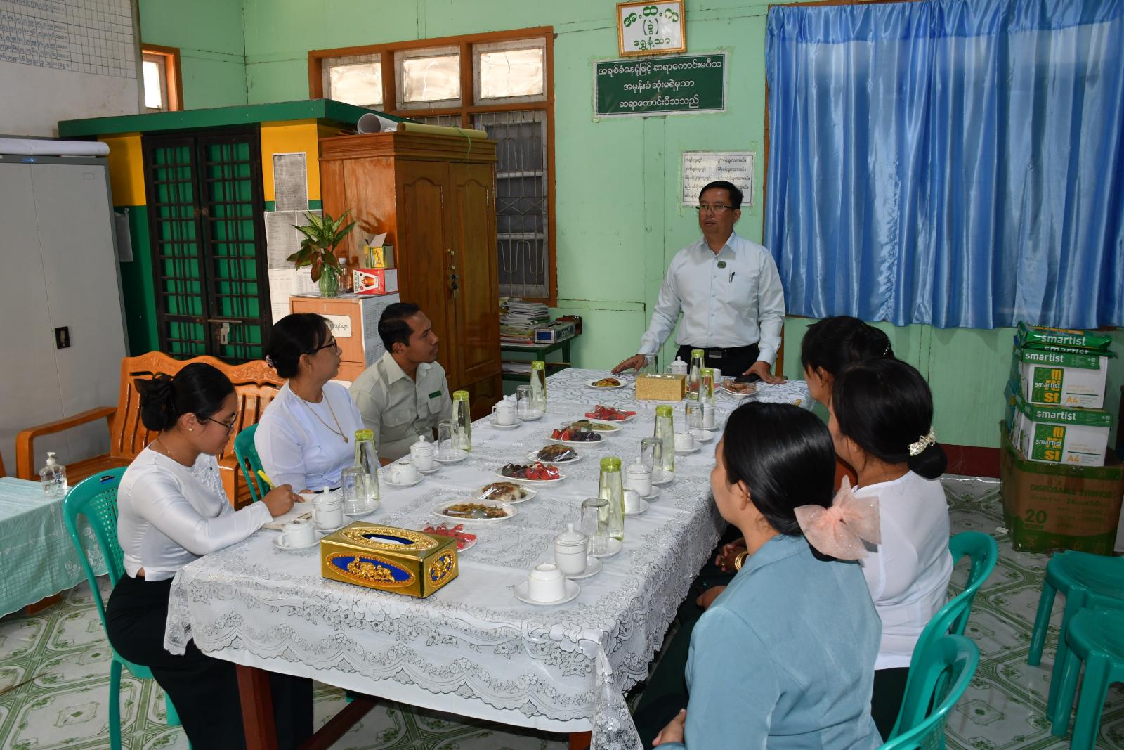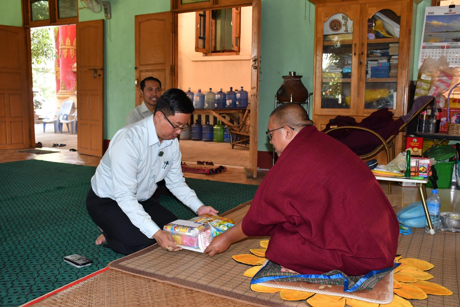 ယင်းနောက် နေပြည်တော်ကောင်စီဝင်နှင့် တာဝန်ရှိသူများသည် တောင်ညိုကျေးရွာရှိ ဦးနေအောင်၏ ဇီးသီးရောင်းဝယ်ရေး လုပ်ငန်းဆောင်ရွက်နေမှု အခြေအနေများအား ကြည့်ရှုအားပေးပြီး တာဝန်ရှိသူများအနေဖြင့် MSME ထုတ်ကုန်လုပ်ငန်းရှင်များနှင့် ချိတ်ဆက်ဆောင်ရွက်ရန်၊ ထုတ်ကုန်ပစ္စည်းများ တိုးတက်မြင့်မားစေရေးအတွက် အသေးစားမှ အငယ်စား၊ အငယ်စားမှ အလတ်စား၊ အလတ်စားမှ အကြီးစားထုတ်ကုန်ပစ္စည်းများအဖြစ်သို့ တိုးမြှင့်ထုတ်လုပ်နိုင်ရေးဆောင်ရွက်သွားရန် ဆွေးနွေးပြောကြားပြီး ဆက်လက်ထွက်ခွာခဲ့ရာ မင်းကုန်းကျေးရွာ၊ ကွင်းအမှတ် (၁၈၈၉)၊ တောင်သူ ဦးအေးလွင်၏ လယ်မြေ၌ ဆင်းရွှေကြာ-၂ နေကြာစိုက်ခင်း အောင်မြင်ဖြစ်ထွန်းနေမှု အခြေအနေများကို ကြည့်ရှုအားပေးခဲ့ပြီး နေပြည်တော်ကောင်စီဝင်မှ စိုက်ပျိုးထွက်ရှိလာသည့် ဆီထွက်သီးနှံများအား ကိုယ်တိုင်ကြိတ်ခွဲ ရောင်းချနိုင်ရေး၊ တစ်နှစ်လျှင်သုံးသီး စိုက်ပျိုးနိုင်ရေး၊ ဆီထွက်သီးနှံများ တိုးချဲ့စိုက်ပျိုးနိုင်ရေးနှင့် သီးထပ်စွမ်းအားများ တိုးတက်လာစေရေးတို့ကို အလေးထားဆောင်ရွက်ကြစေလိုကြောင်းနှင့် မြေအောက်ရေ စက်ရေတွင်းတူးဖော်၍ ဆိုလာဖြင့် ရေတင်စိုက်ပျိုးနိုင်ရေး ဆွေးနွေးမှာကြားခဲ့ပြီး ဆက်လက်ထွက်ခွာခဲ့ရာ ငန်းစပ်ကျေးရွာ ရွှေဟင်္သာဘုန်းတော်ကြီးကျောင်း၌ မြို့နယ်မွေးမြူရေးနှင့် ကုသရေးဦးစီးဌာနမှ ဦးဆောင်၍ မွေးမြူရေးဒီပလိုမာကျောင်းဆင်း သင်တန်းသား/ကျောင်းသူများအား ခွေးရူးပြန်ရောဂါ ကာကွယ်ဆေးထိုးနှံခြင်း လက်တွေ့ကွင်းဆင်းပြသနေမှုများအား ကြည့်ရှုအားပေးခဲ့ပြီး ကျောင်းထိုင်ဆရာတော် မဟာသဒ္ဓမ္မ ဇောတိကဓဇ ဦးပဏ္ဍဝအား ဖူးမြော်ကြည်ညို၍ နဝက္ကမ အလှူငွေနှင့် ဆန်၊ ဆီ၊ ဆေး၊ ဆား လှူဖွယ်ဝတ္ထုပစ္စည်းများ ဆက်ကပ်လှူဒါန်းခဲ့သည်။