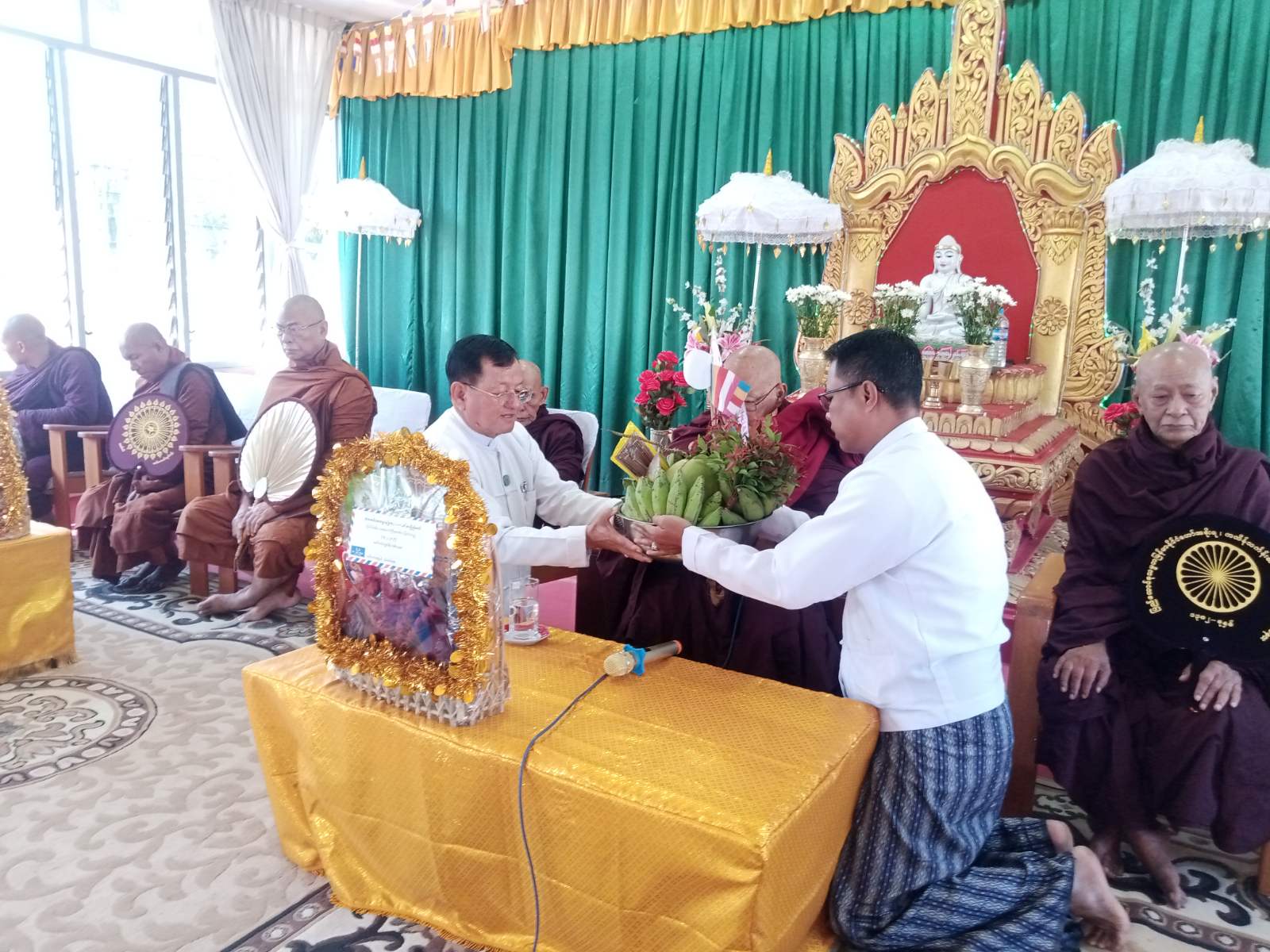 ယင်းနောက် နေပြည်တော်ကောင်စီဝင် ဦးမြင့်စိုးနှင့် တာဝန်ရှိသူများက ဆရာတော် ကြီးများအား လှူဖွယ်ဝတ္ထုပစ္စည်း ဆက်ကပ်လှူဒါန်းပြီး အနုမောဒနာ တရားနာကြား၍ ရေစက်သွန်းလောင်း အမျှပေးဝေခဲ့ကာ ဆရာတော်သံဃာတော်များအား နေ့ဆွမ်းဆက်ကပ် လှူဒါန်းခဲ့ပါသည်။