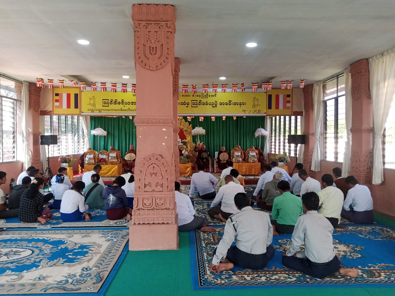 ရှေးဦးစွာ နမောတဿသုံးကြိမ်ရွတ်ဆို ဘုရားကန်တော့၍ အခမ်းအနားကို ဖွင့်လှစ်ကာ အဘိဂုရု ပေါက်မြိုင်ဆရာတော်ထံမှ ငါးပါးသီလ ခံယူဆောက်တည်ခြင်း၊ ပရိတ်တရားနာယူခြင်းများ ဆောင်ရွက်ခဲ့ကြသည်။