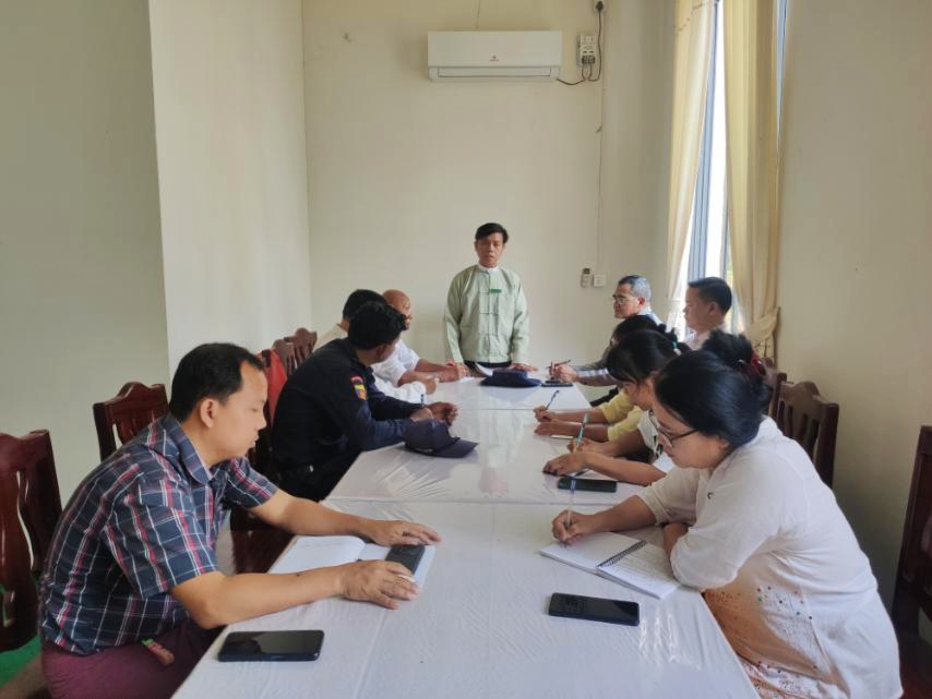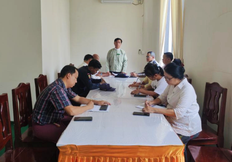 အစည်းအဝေးတွင် မြို့နယ်သဘာဝဘေးကော်မတီဥက္ကဋ္ဌ၊ မြို့နယ်စီမံအုပ်ချုပ်ရေးအဖွဲ့ဥက္ကဋ္ဌ ဦးကျော်ကျော်ဦးက အကြမ်းဖက်သောင်းကျန်းသူများကြောင့် ယာယီနေရပ်စွန့်ခွာနေကြသည့် ပြည်သူများအား နိုင်ငံတော်မှ ၂၀၂၅ခုနှစ်၊ ဇန်နဝါရီလမှစတင်၍ လစဉ်ထောက်ပံ့ငွေများ ပေးအပ်နိုင်ရေးအတွက် ပူးပေါင်းဆောင်ရွက်ရမည့်အခြေအနေများ၊ လုပ်ငန်းဆောင်ရွက်ချက်များနှင့်ပတ်သက်၍ ဆွေးနွေးပြောကြားခဲ့သည်။